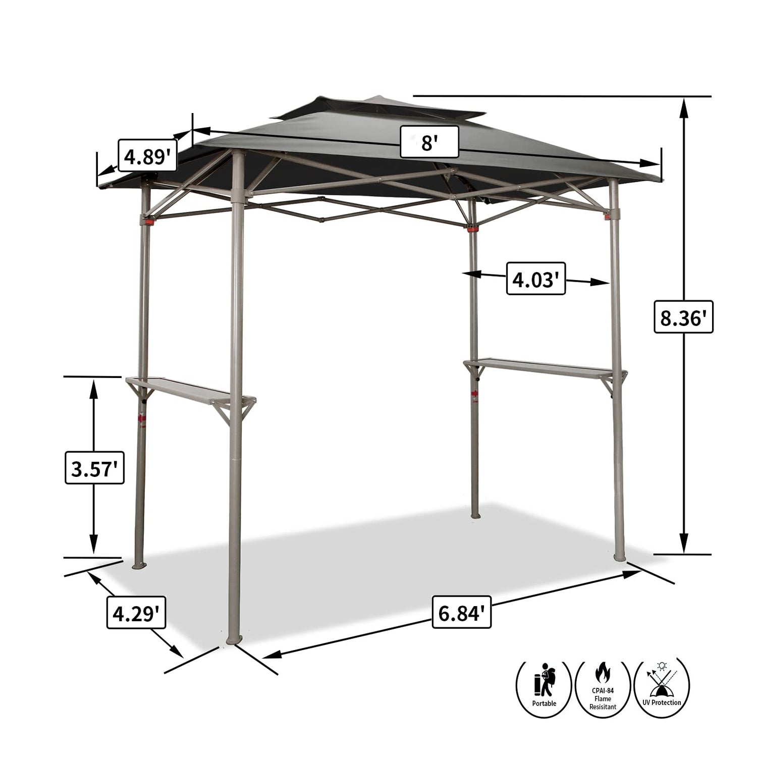 - Grill Gazebo Top: Rugged 300D canopy fabric provides UPF 50+ UV protection, Water resistant and Rip-lock Fabric. Vented and double-tiered top makes smoke come out.