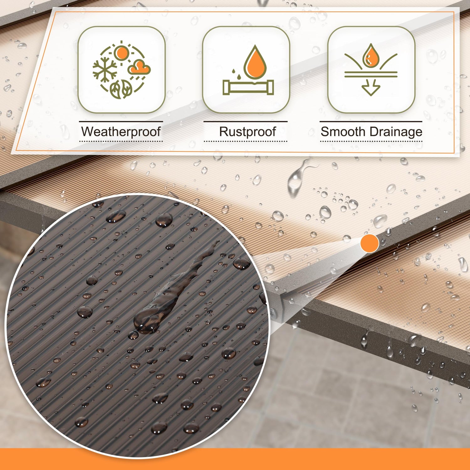 - 【High-quality materials】The wall-mounted gazebo is made of durable 6mm polycarbonate hollow panels and a metal frame. The roof of this outdoor pavilion provides shade from the sun and rain, keeping light and warmth. Ensure a comfortable outdoor experience.