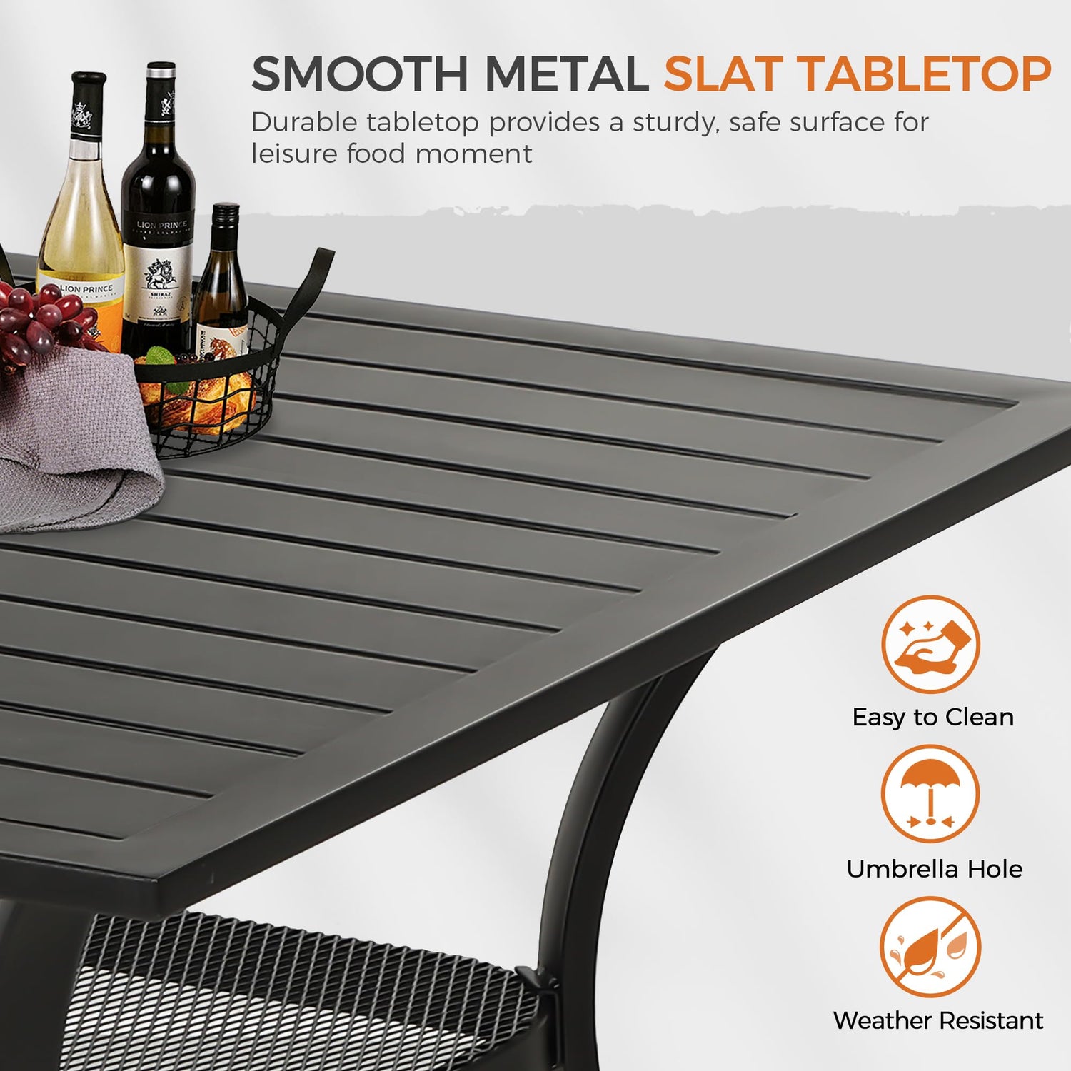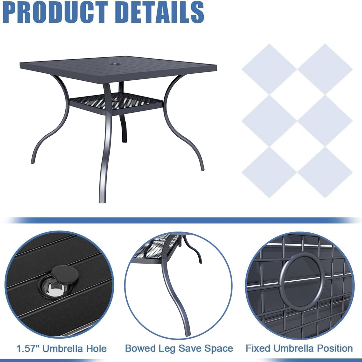 - 【Convenient umbrella hole for shade】The square dining table comes with a 1.57-inch umbrella hole, allowing you to easily add a sun umbrella for comfortable outdoor dining on sunny days.