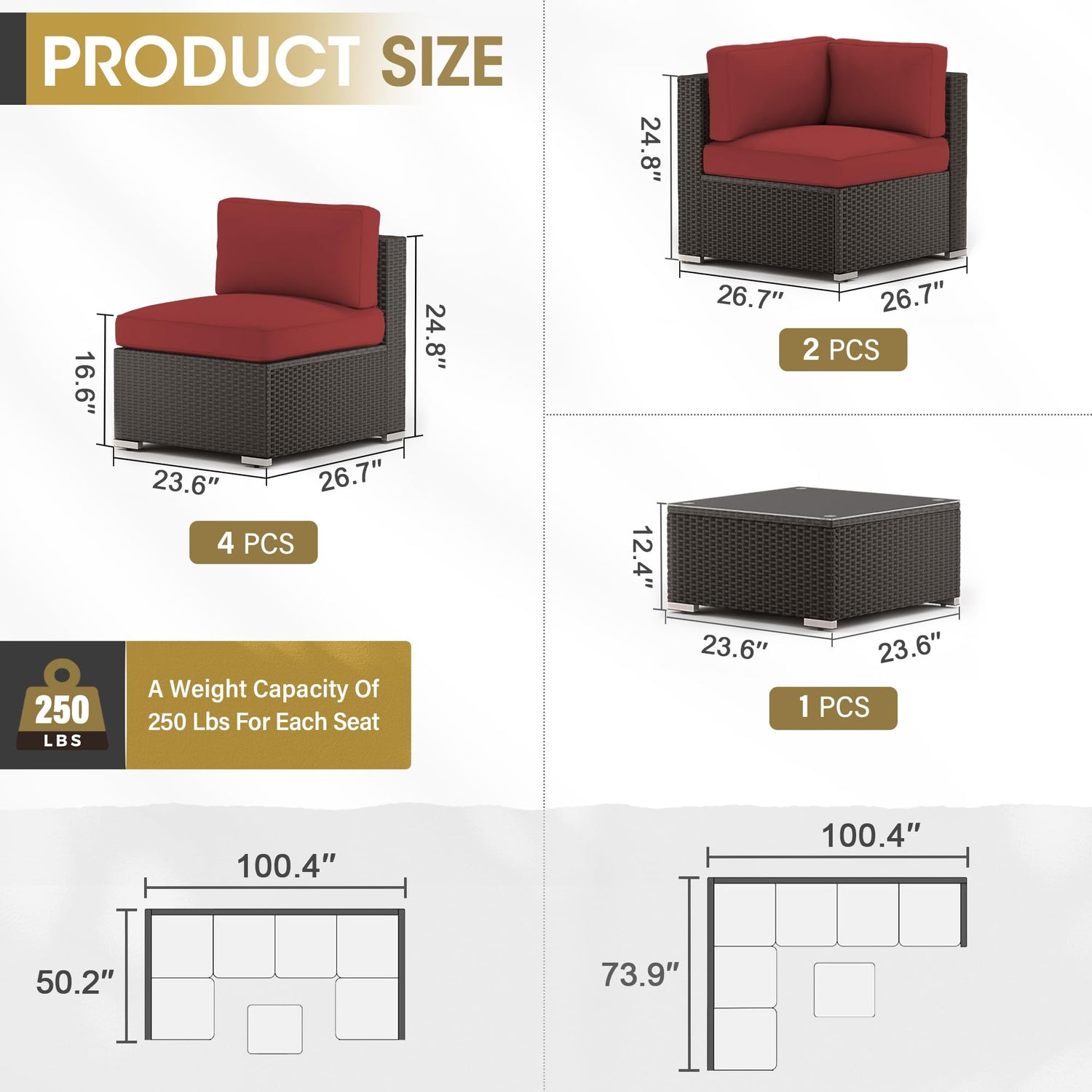 - 【High-quality materials】 The outdoor sectional sofa constructed from strong galvanized iron frame and hand-made weather-resistant PE rattan, won't rust or fade. The cushion covers can be removed with zipper, easy to clean!