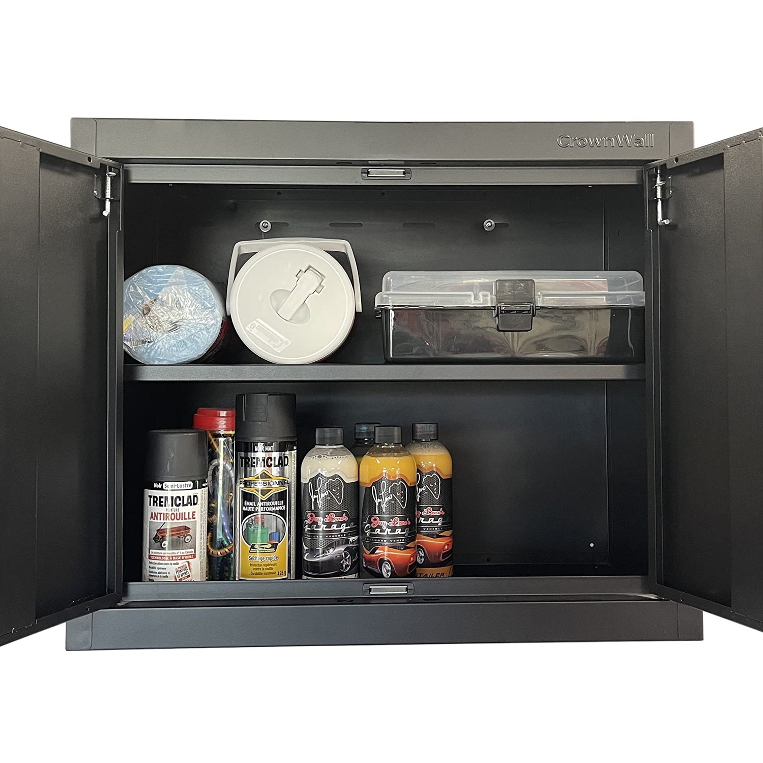 Details: Designed for durability, the Crownwall Pro collection cabinet features fully assembled beautifully crafted storage cabinets. The cabinet is crafted from steel and offers durability and quality for all your tools and hobby items. This cabinet is designed to be stylish yet efficient at the same time. For added security, it is equipped with a lock and key. 200lbs Weight capacity allows you to confidently pack the storage space full of tools. Designed to maximize storage space on your wall, the crownwall pro series offers a clean, modern look.