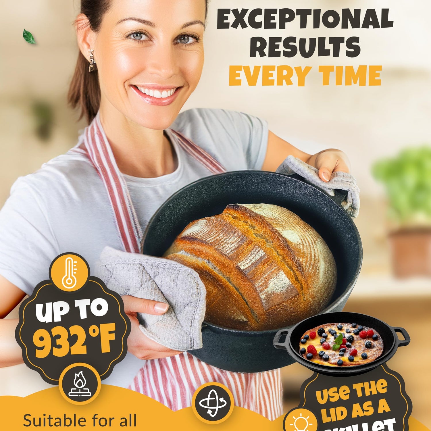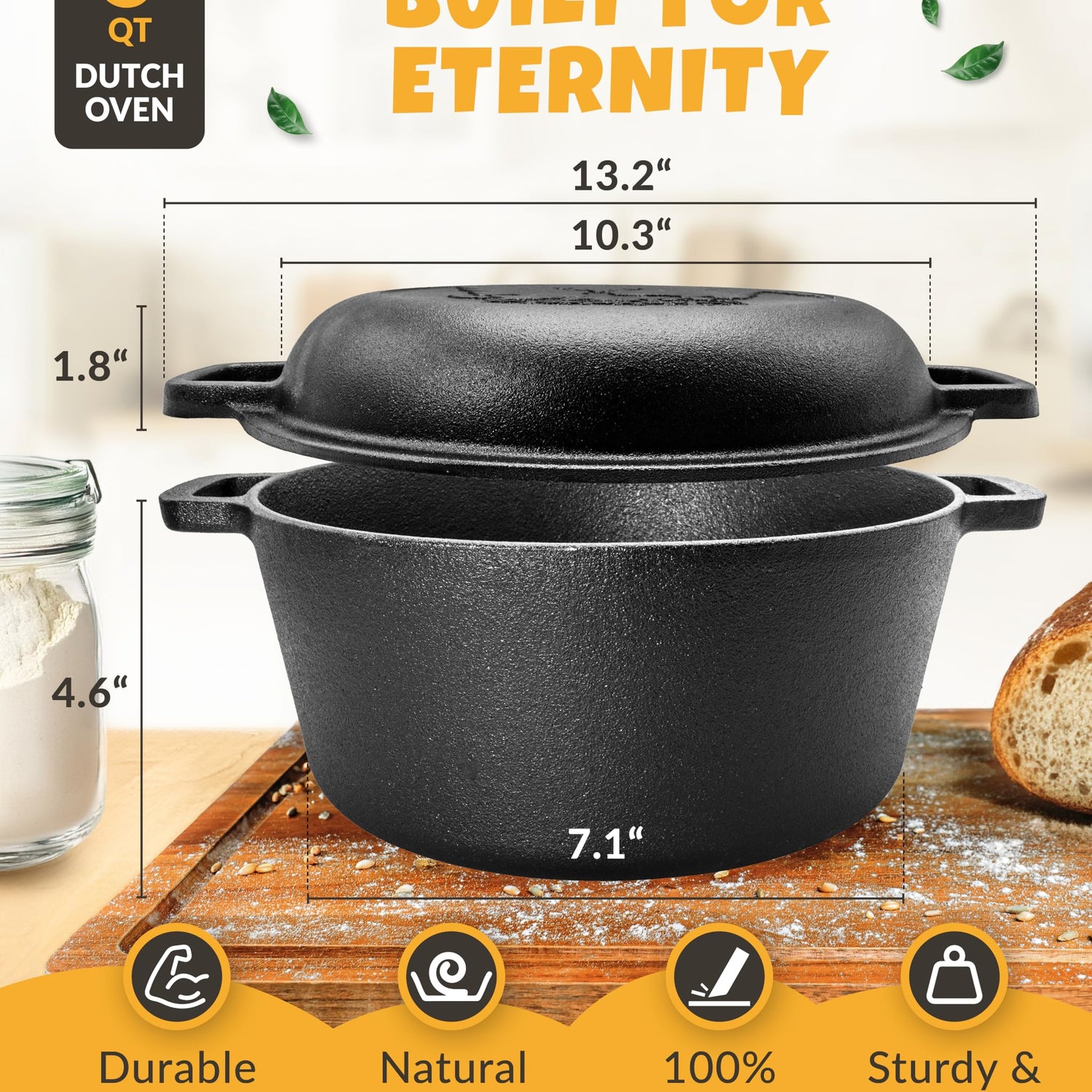 - PERFECT CRUST - The pre-seasoned 5QT dutch oven with lid ensures even heat distribution for that crispy crust we all love. You can have healthy whole grain or sourdough bread every day of the week