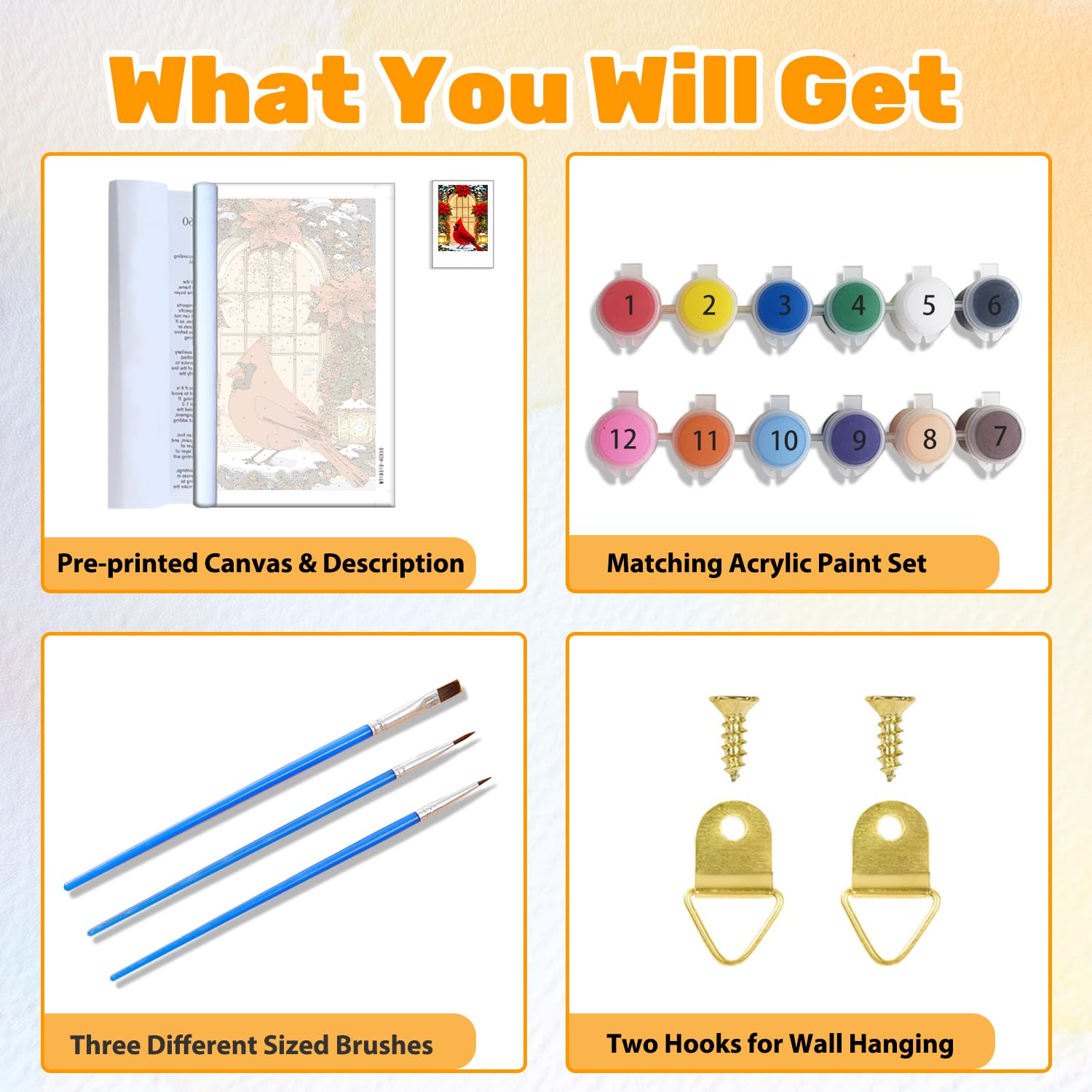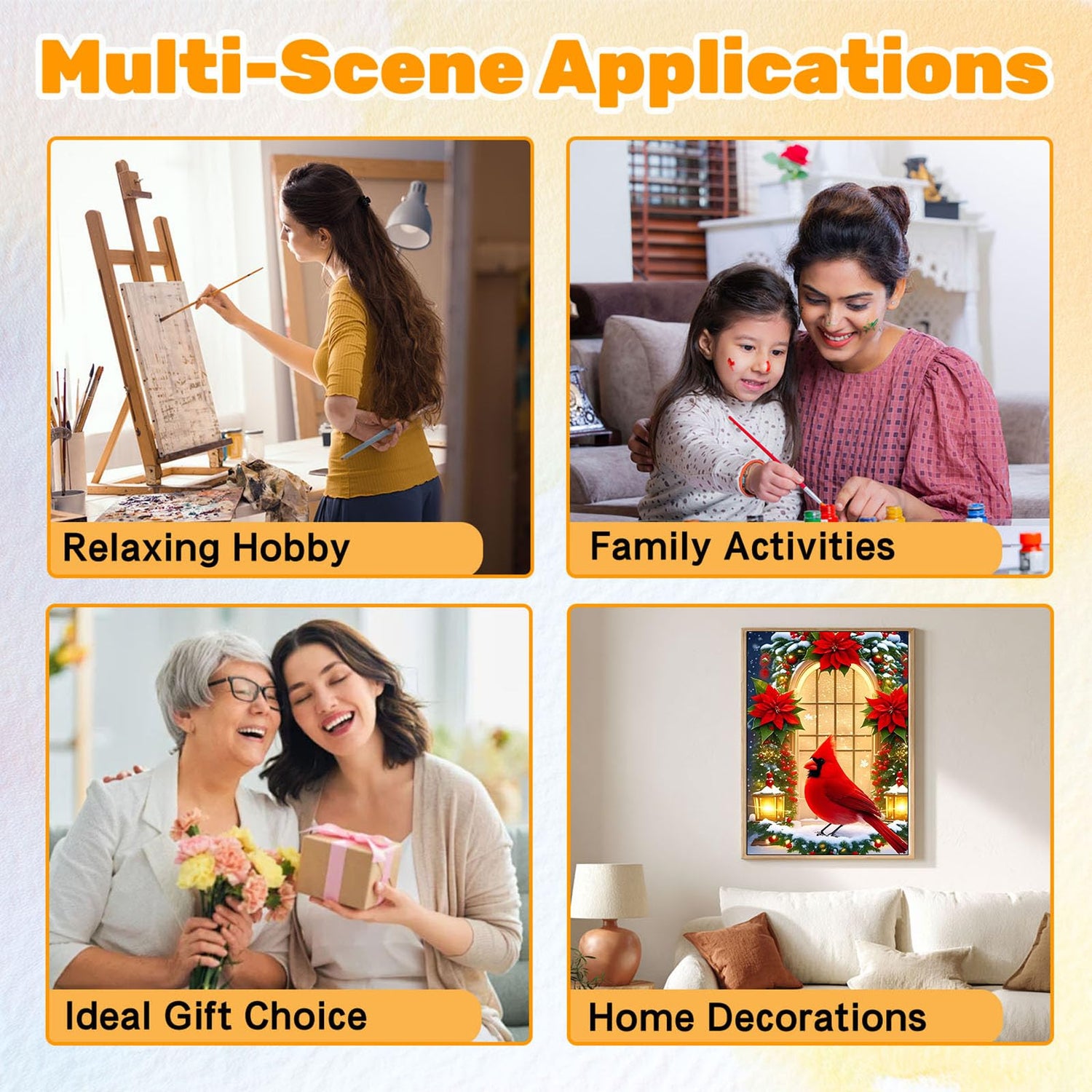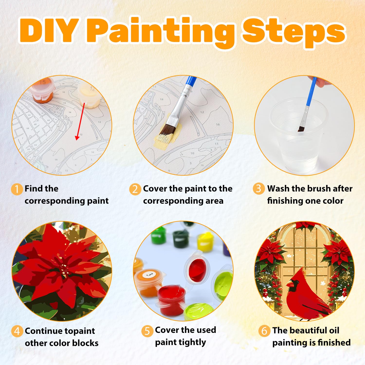 - Craft Your Own Painting:DIY cardinal paint by number is easy and fun. Just follow the numbers on the canvas with the corresponding paint, and you will get a materspiece that is created by youself