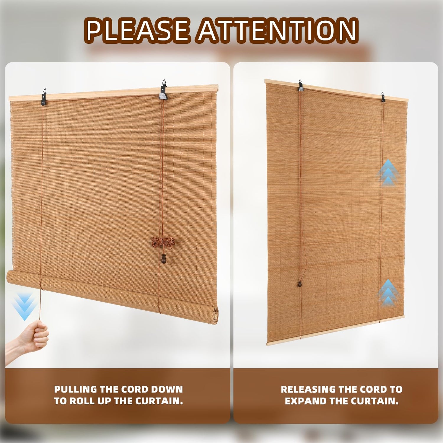 - 【Easy to Install】Our Bamboo blinds are easy to install on any window or door, requiring no professional assistance. The roller blind's unique design allows for easy operation and height adjustment to suit your preferences