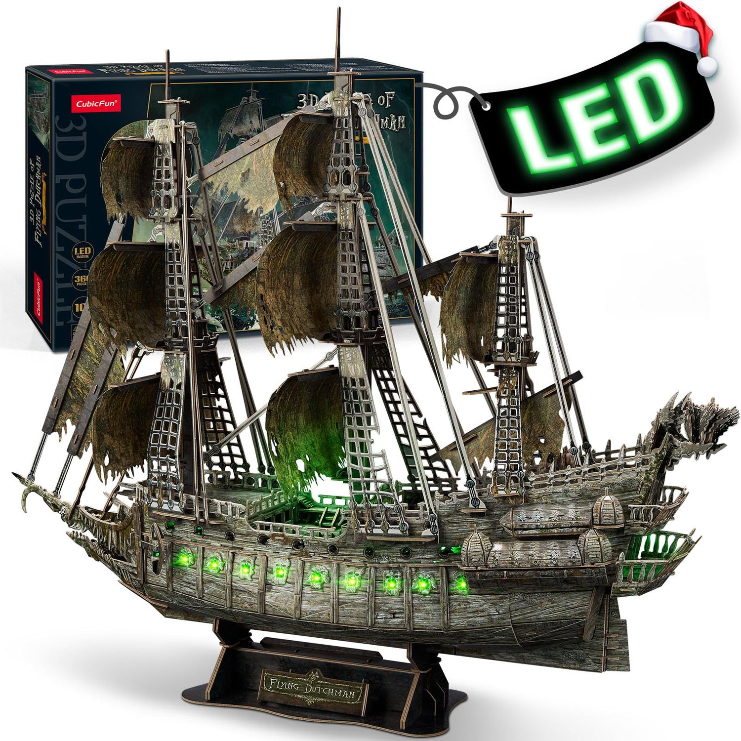 CubicFun 3D Puzzles for Adults - LED Flying Dutchman 3D Puzzle, 360-pieces - Desk Decor for Home Office - Christmas Aduls Teacher Gifts Stocking Stuffers