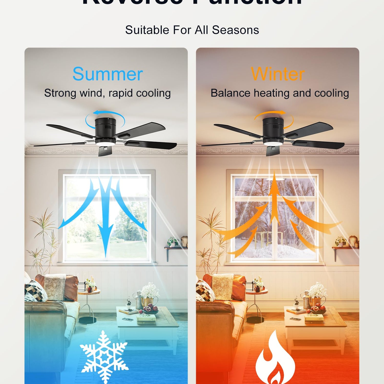 - Super Quiet & Reversible Ceiling Fan : Equipped with a high-quality DC motor that operates quietly at noise levels - 24dB and the option to disable keypress tone, CubiCubi flush mount ceiling fan with lights ensures a serene living environment and comfortable sleep. Its reversible function delivers a refreshing strong breeze in summer and promotes warm air circulation in winter to dissipate the cold.