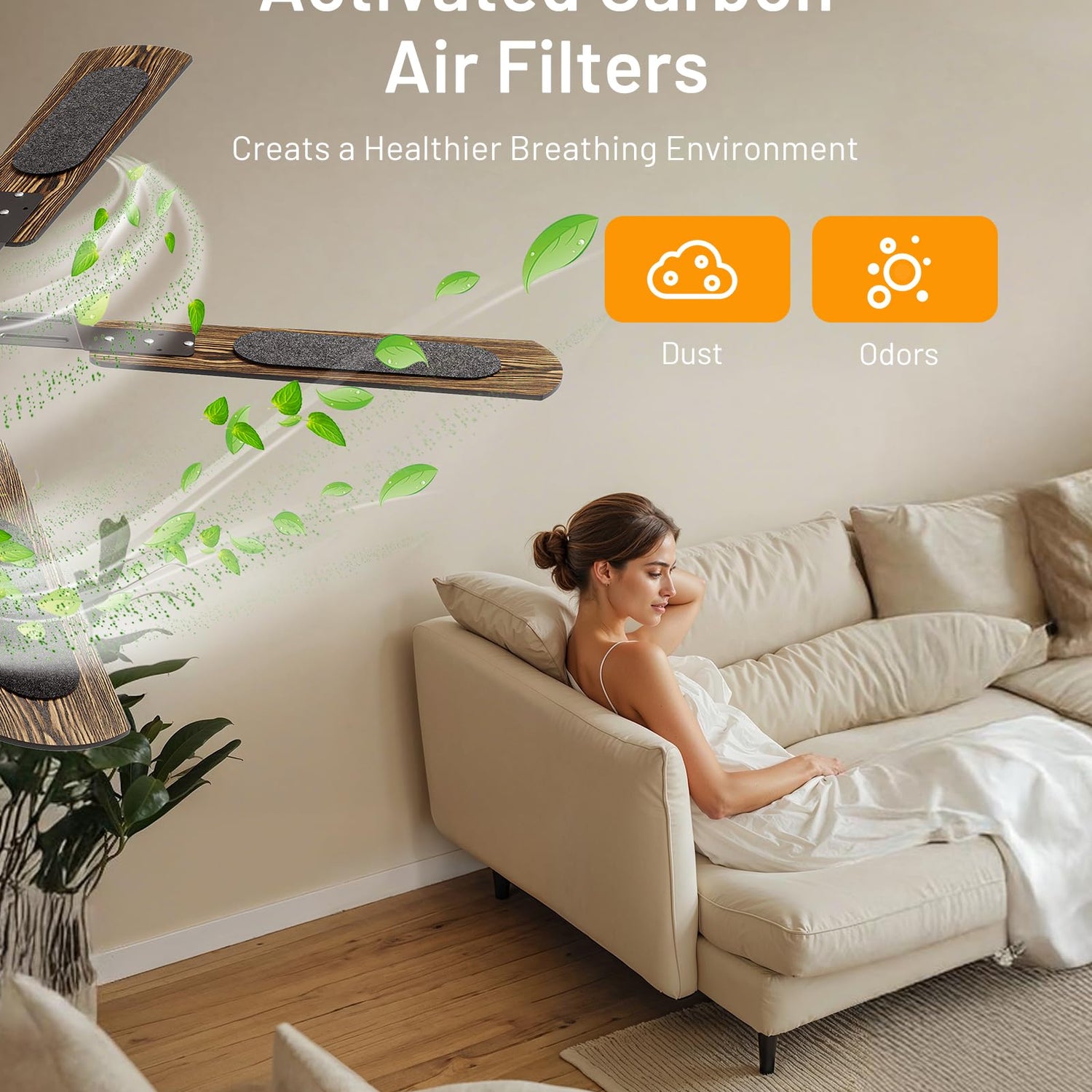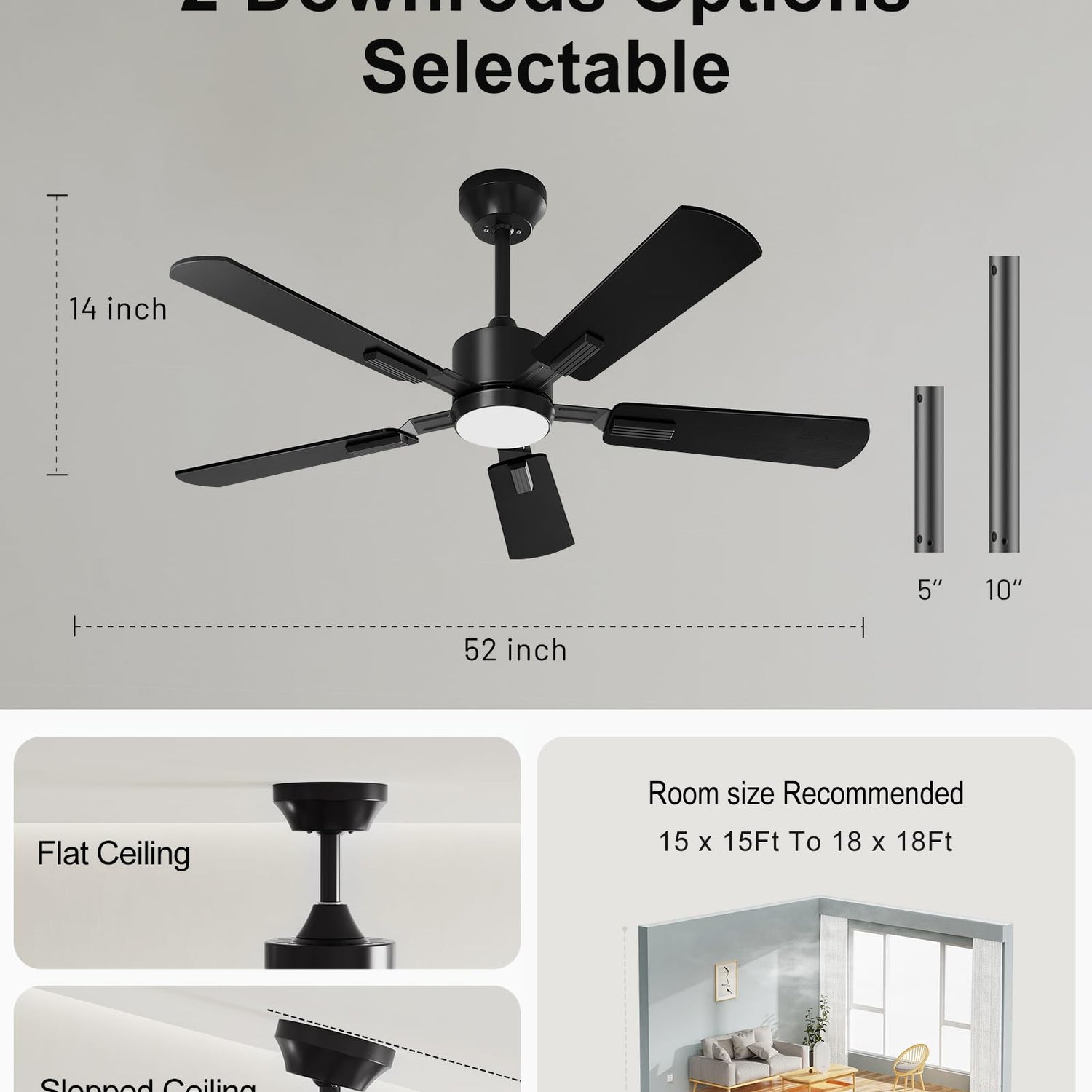 - 【52 inch Ceiling Fans with Lights】: Equipped with a fashionable retro aesthetic with dual-sided blades and carbon filters, CUBICUBI ceiling fan comes with 2 downrods (5"/10" )and supports installation at an angle (up to 15°), serves as a stunning decoration for your home. Perfect for modern, industrial, or farmhouse interiors (15ft x 15ft to 18ft x 18ft) and bedrooms, living rooms, kitchens, offices, and patios.