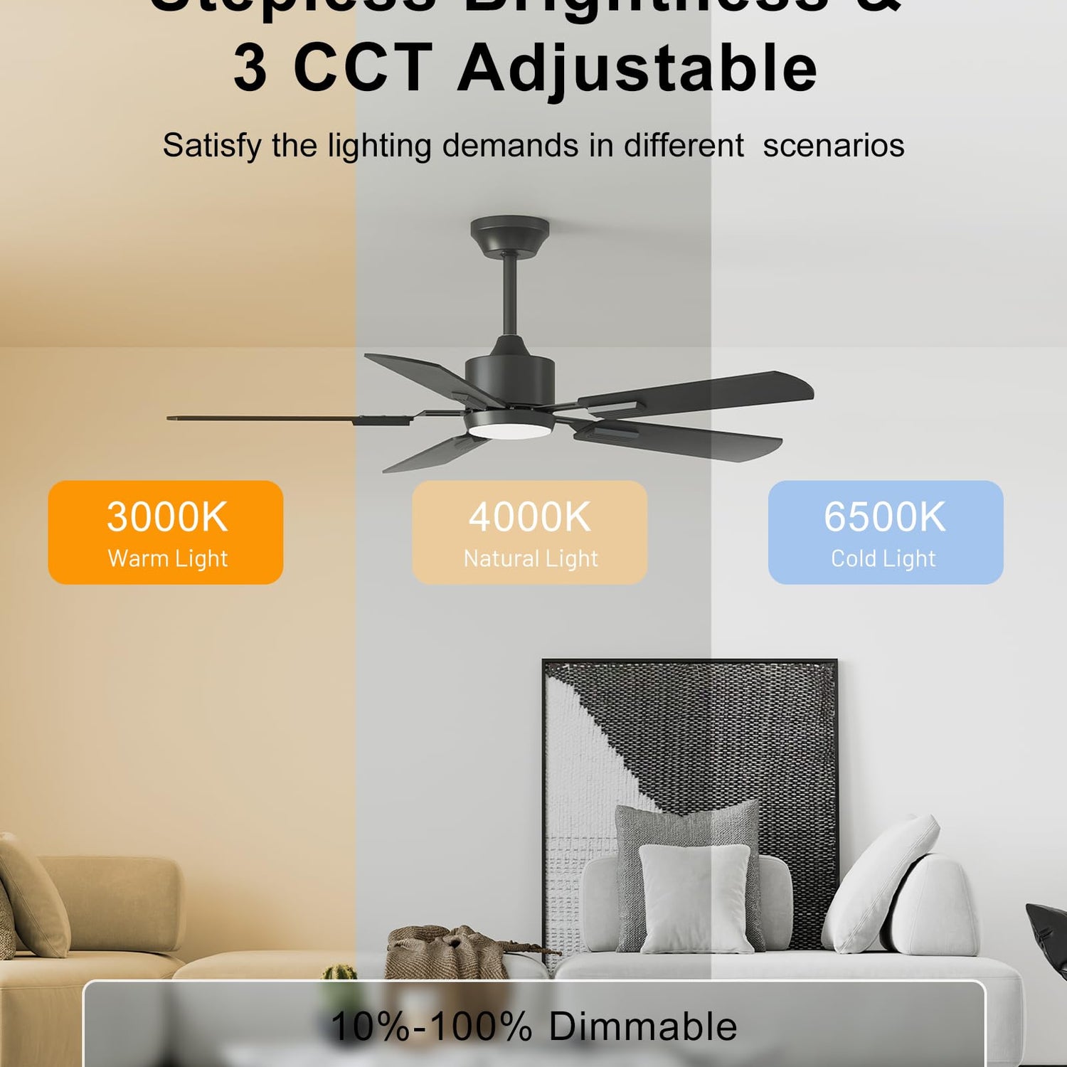 - 【Stepless Brightness & 5CCT Customization】: CUBICUBI outdoor ceiling fan with light features an adjustable LED light panel, offering brightness control from 10% to 100% and three color temperatures (3000K warm white, 4500K natural white, 6500K cool white). Ideal for diverse indoor environments like studies and bedrooms, as well as nighttime lighting needs.