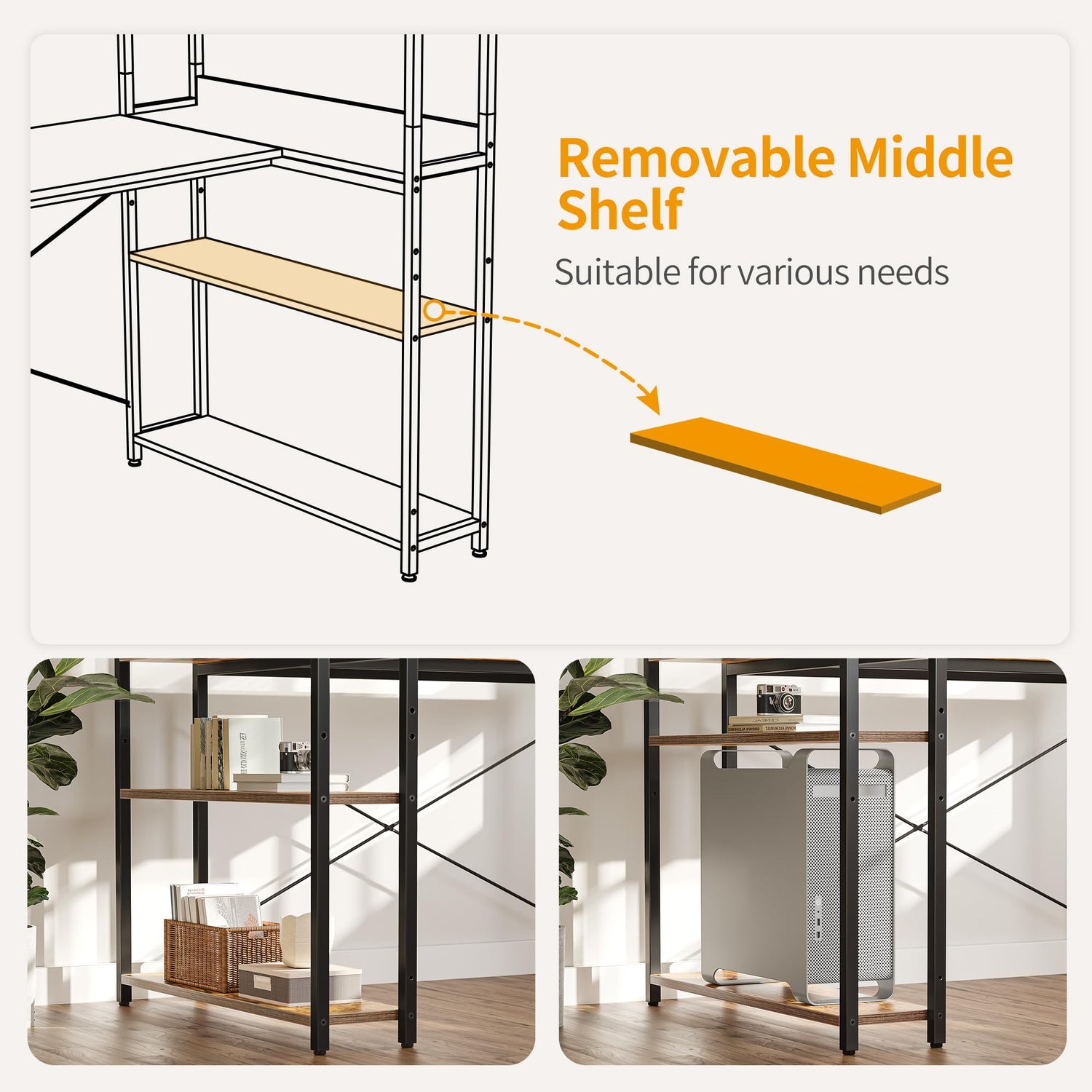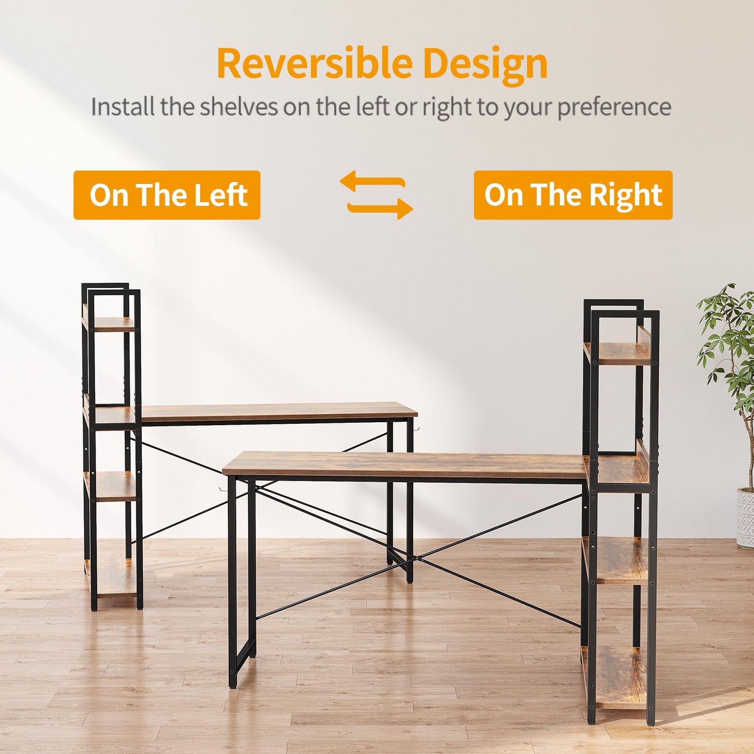 CubiCubi Computer Corner Desk with Storage Shelves, 47 Inch Reversible L Shaped Desk with Bookshelf, Home Office Writing Desk with Hooks, Small L Study Table, Rustic Brown
