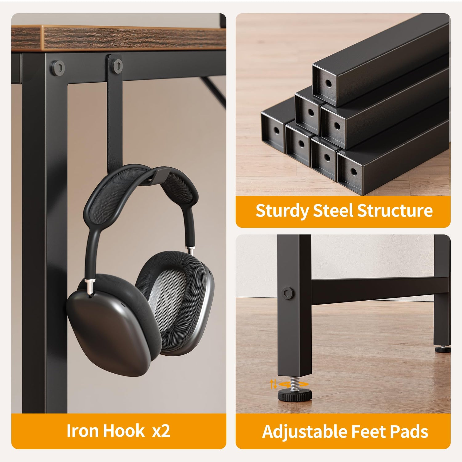 - 【Sturdy & Stable Construction】Crafted with a premium metal frame and high-quality MDF board, our desk offers durability, scratch and water resistance. Its adjustable non-slip foot pads ensure floor protection and stability, even on uneven surfaces.