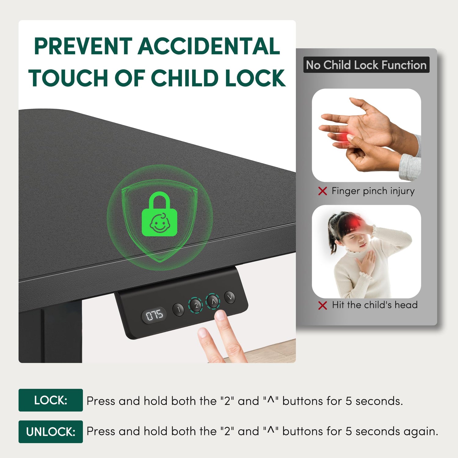 - 【Childproof】Our L-shaped standing desk features a child safety lock, providing added protection for your kids by preventing accidental use of the desk and potential injuries.