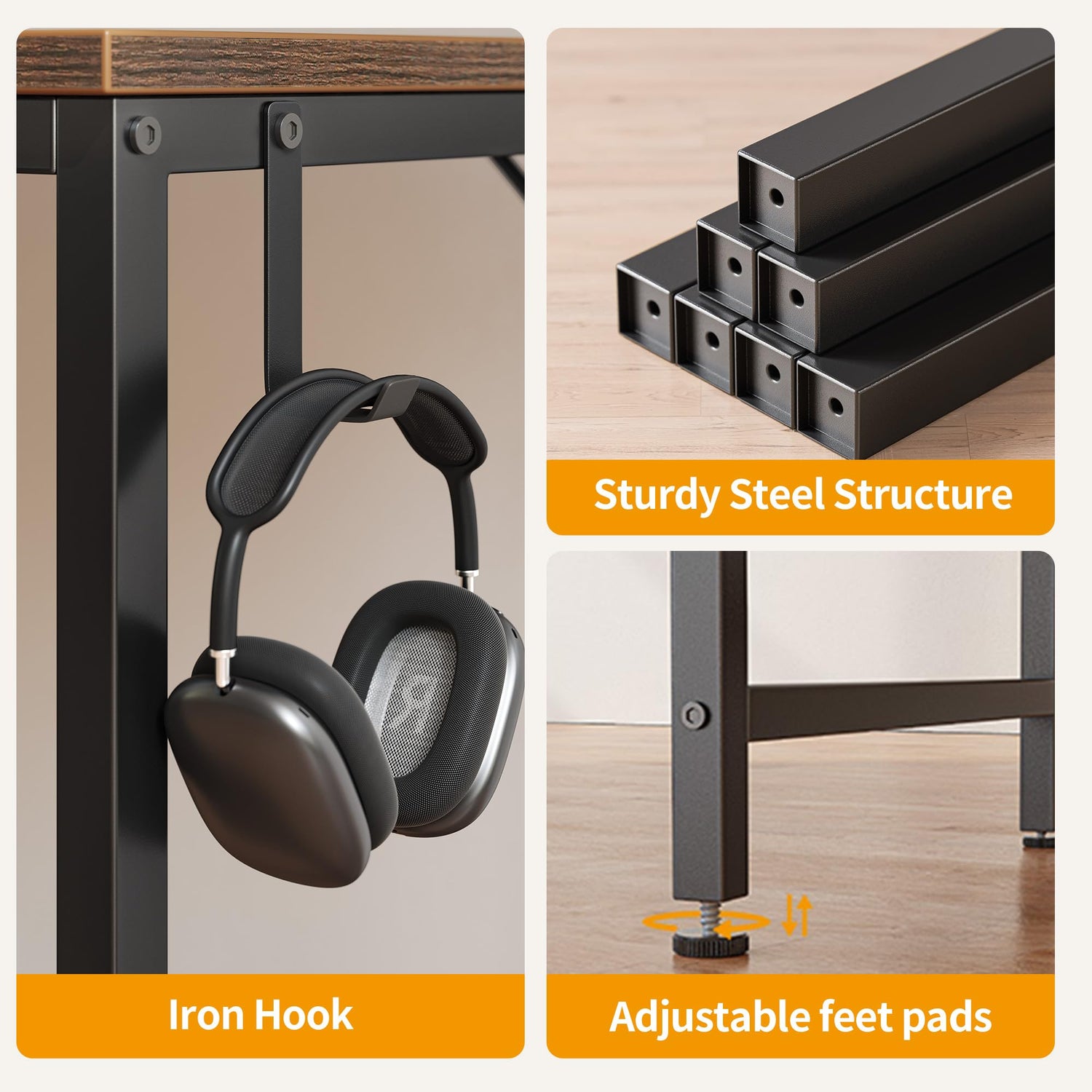- Sturdy Stable for Use: Rigid metal frame with double iron strut design and adjustable leg pads provide greater stability, ensuring you enjoy your work on this desk.