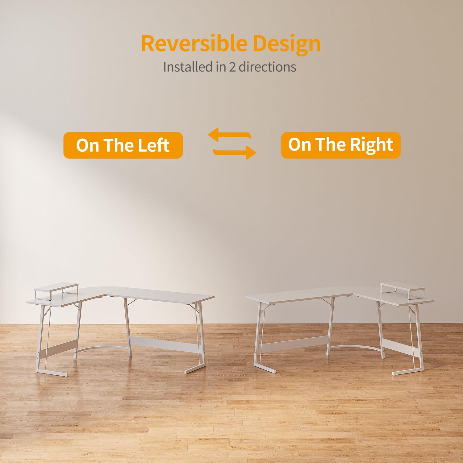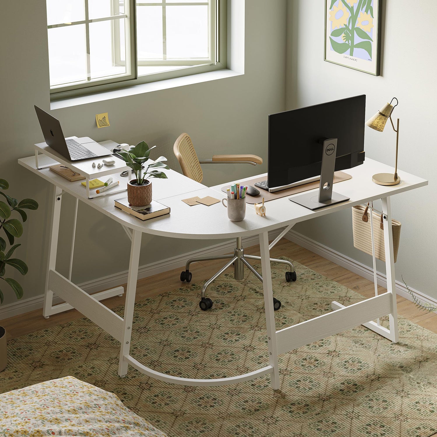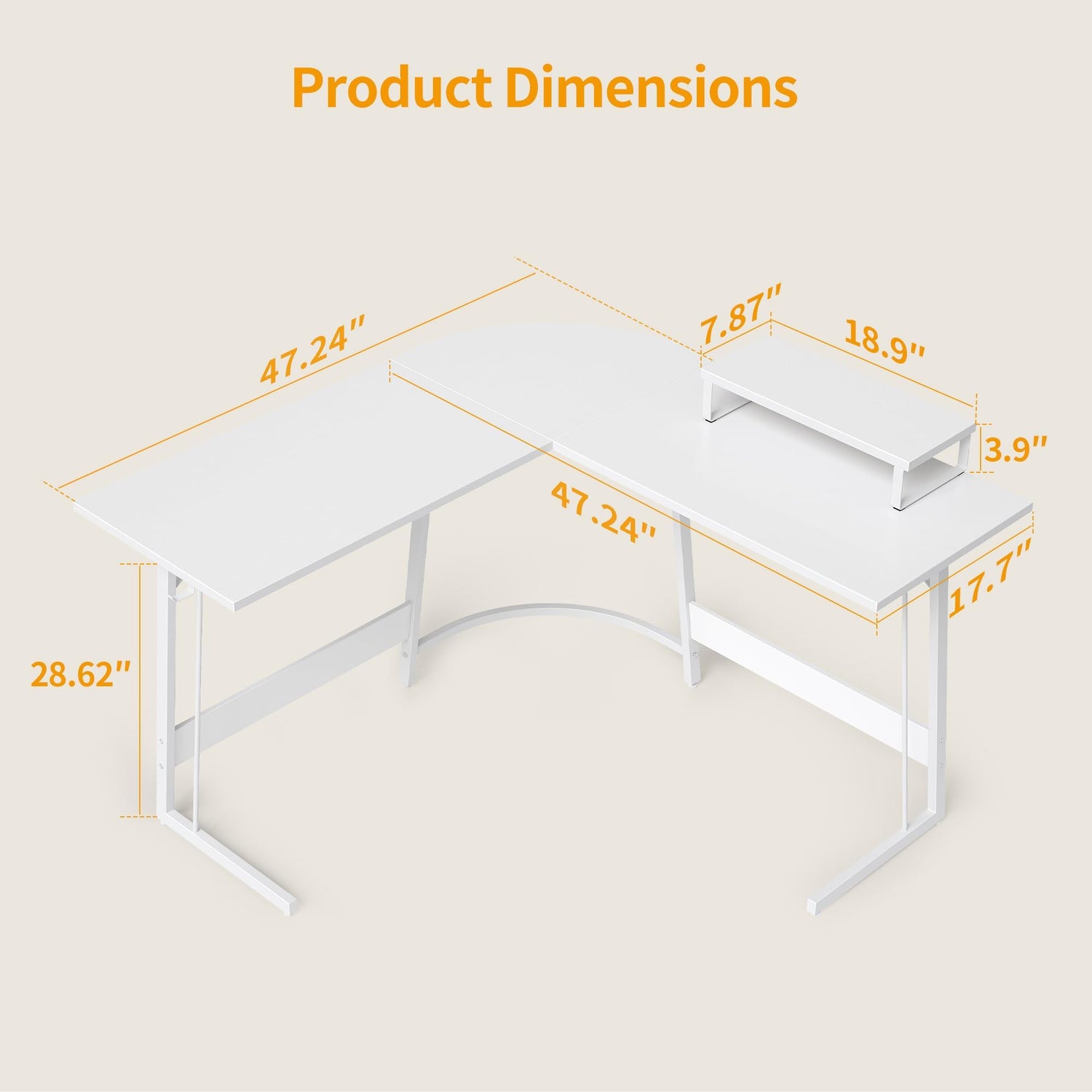 Cubiker L Shaped Desk, Computer Corner Desk, Gaming Desk with Monitor Stand, Home Office Study Writing Workstation, Space-Saving(47 Inch White)