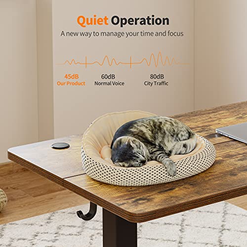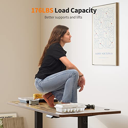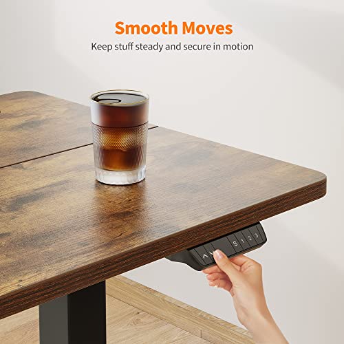 Cubiker Standing Desk 48 x 24 Inch, Stand up Height Adjustable Desk, Home Office Electric Table, Sit Stand Desk with Splice Board, Black Frame & Rustic Brown Desktop