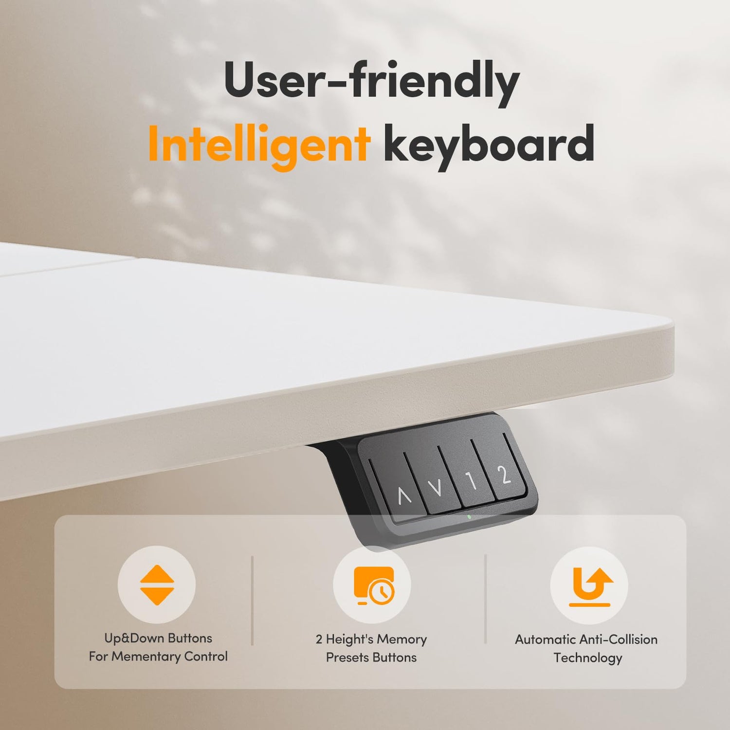 - Intelligent Motor System: Smoothly switching between 28.3" and 46.5" heights, the electric standing desk boasts a crash rebound feature to protect your desk from damage.