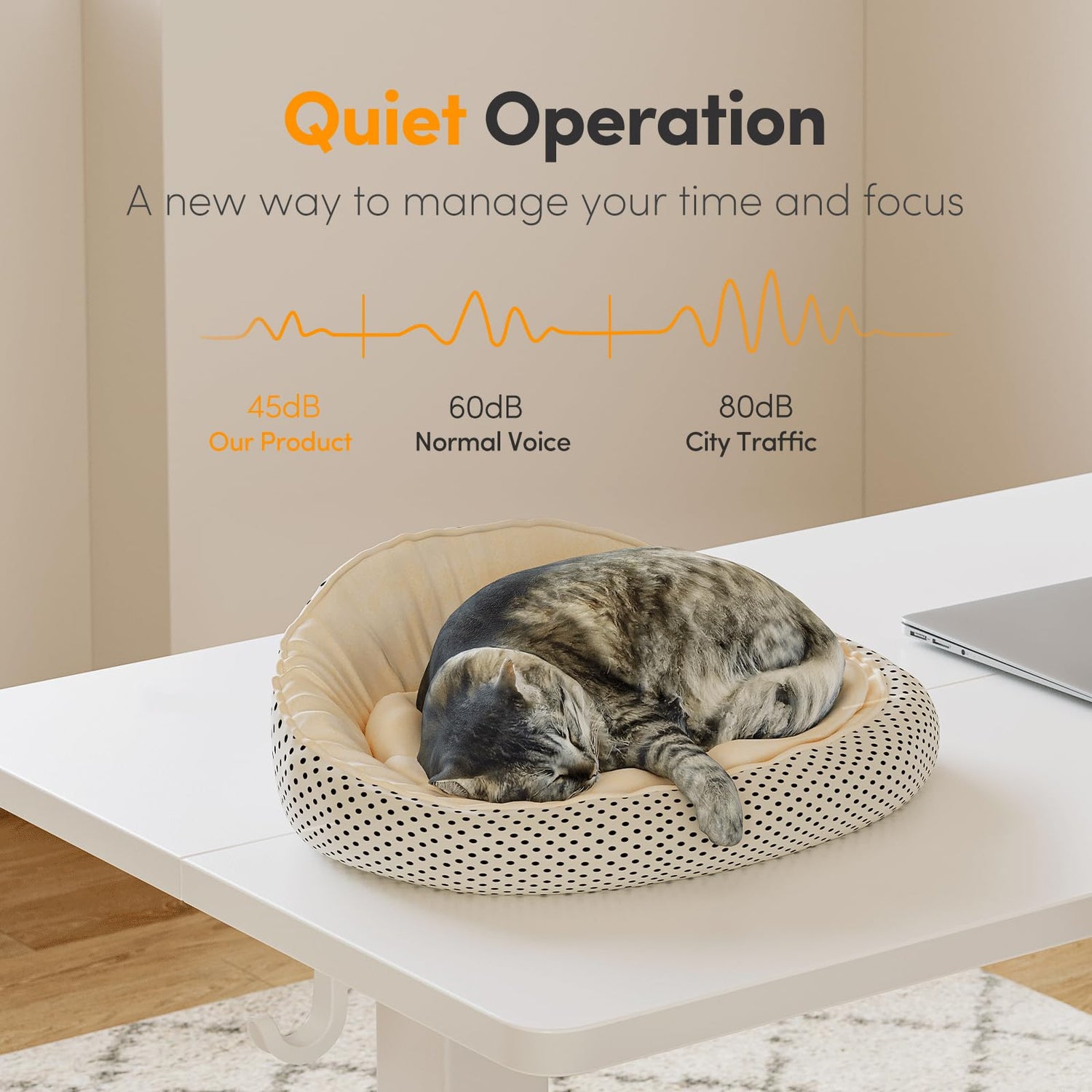 - Strong Frame: The rising desk frame is made of industrial-grade steel frame. Desktop lifting speed: 20mm/s, no-load noise ≤ 55db.
