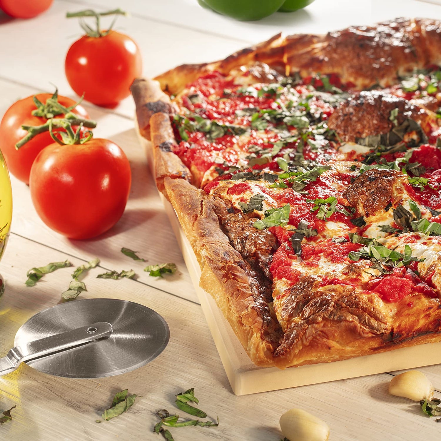 Details: Pizza Stone for Oven, Grill, BBQ- Rectangular Pizza Baking Stone- XL 16" x 14" Pan for Perfect Crispy Crust: CucinaPro's professional-grade pizza stone will take your homemade pizza making to the next level! Designed to be used in the oven or on the grill the unique square stone is sure to produce a crisp crust. The highly absorbent porous material extracts moisture while simulating traditional restaurant pizza.