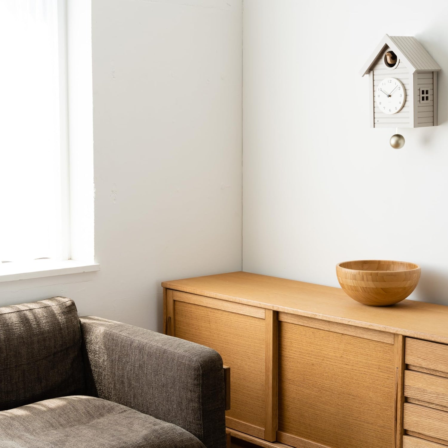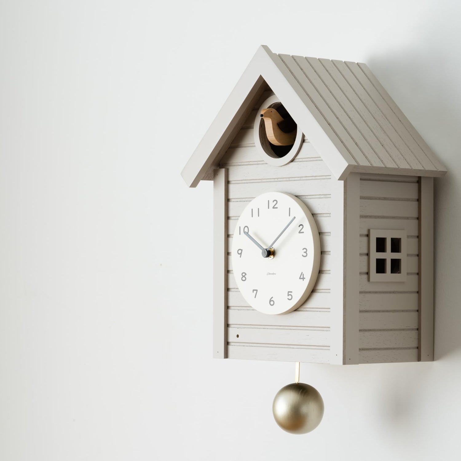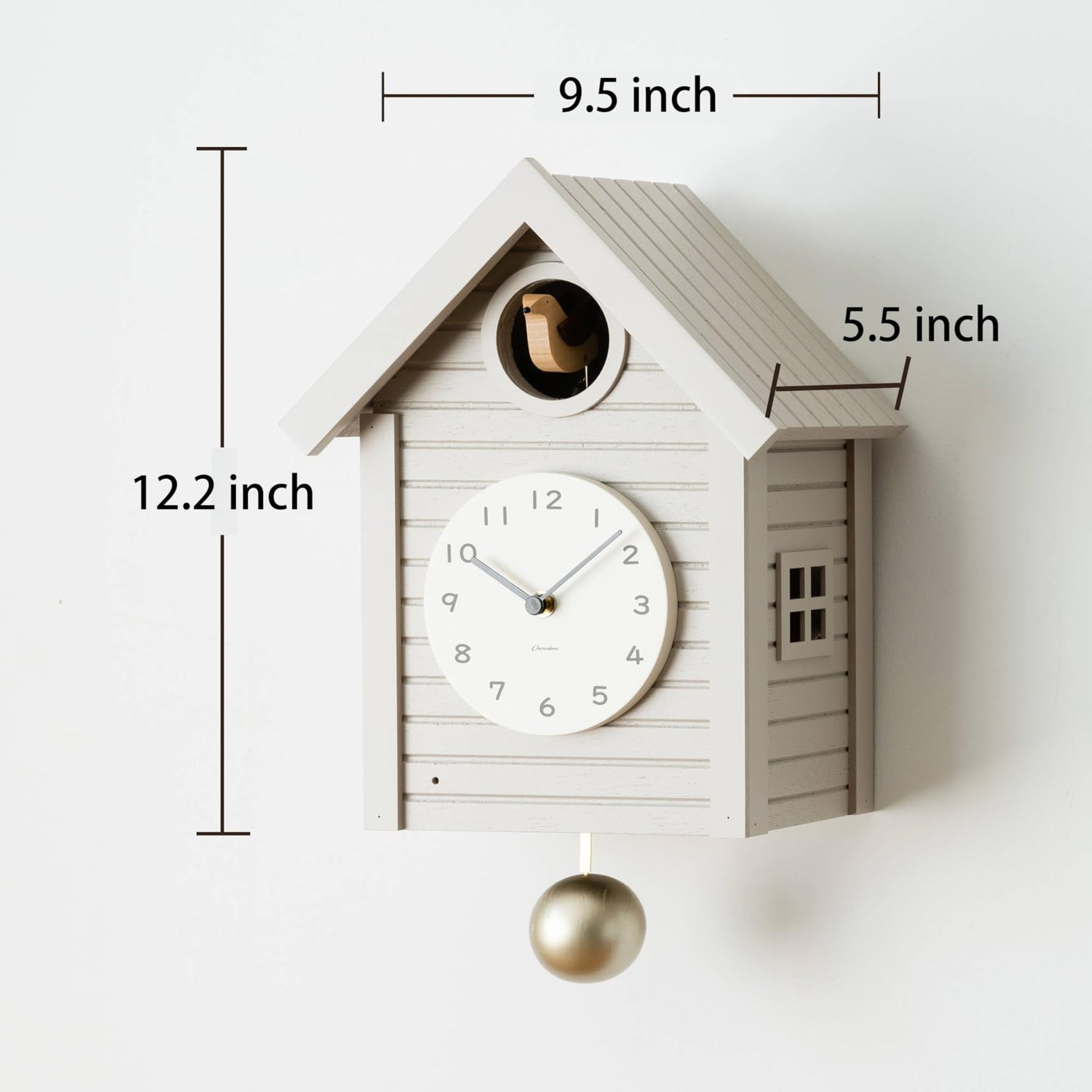 Cuckoo Clock Japanese Handcrafted Solid Wood Pendulum Wall Clock Silent Non-Ticking Hourly Chime Function Battery Operated Modern Decorative for Living Room Bedroom Kids Cuckoo CLOCK CH-059 (GRAY)
