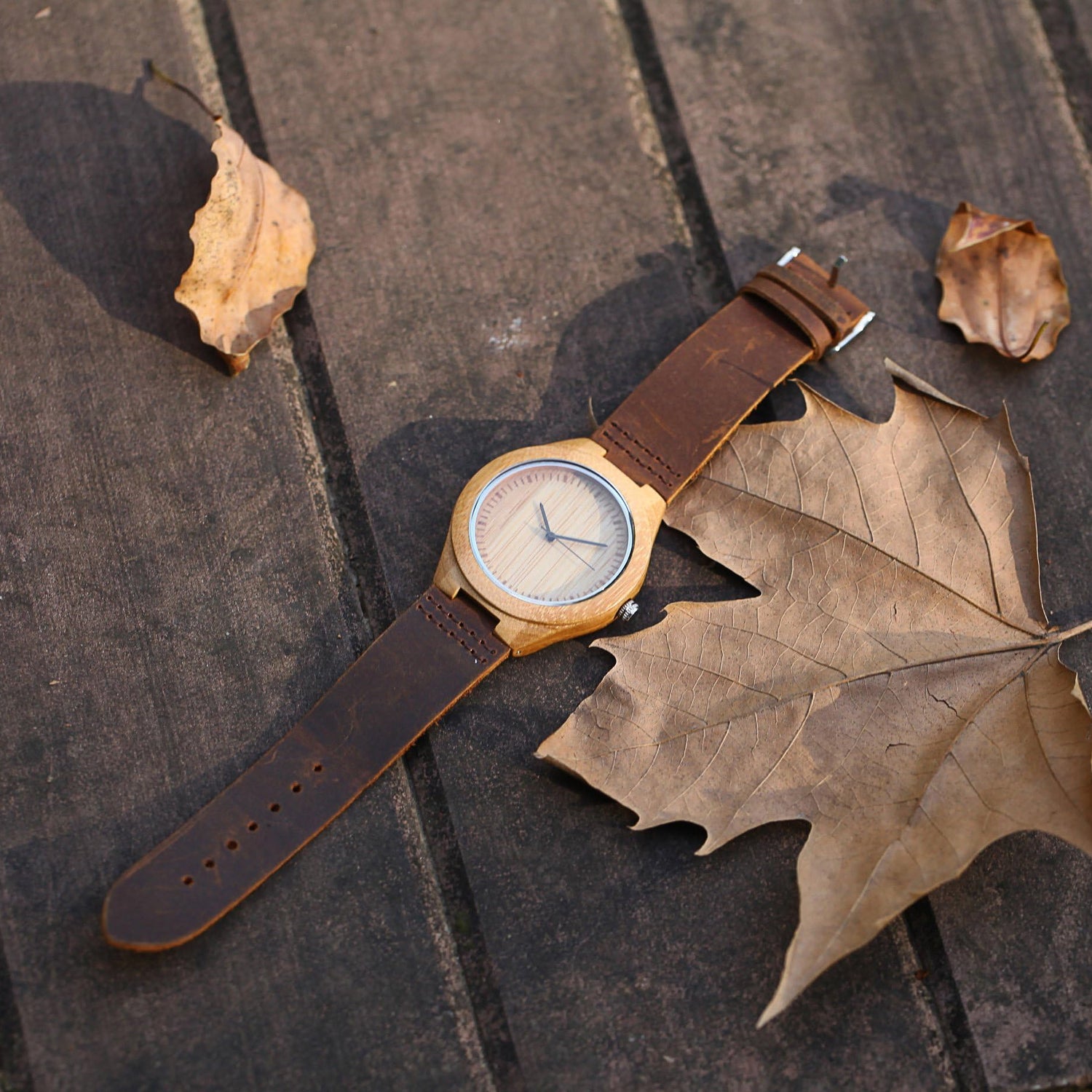 - Real Bamboo Case:No emblem on the face of the watch.This minimal design captures the natural essence of traditional bamboo, with a light, subtle aroma and glass front for protection. The use of bamboo materials is also eco-friendly.