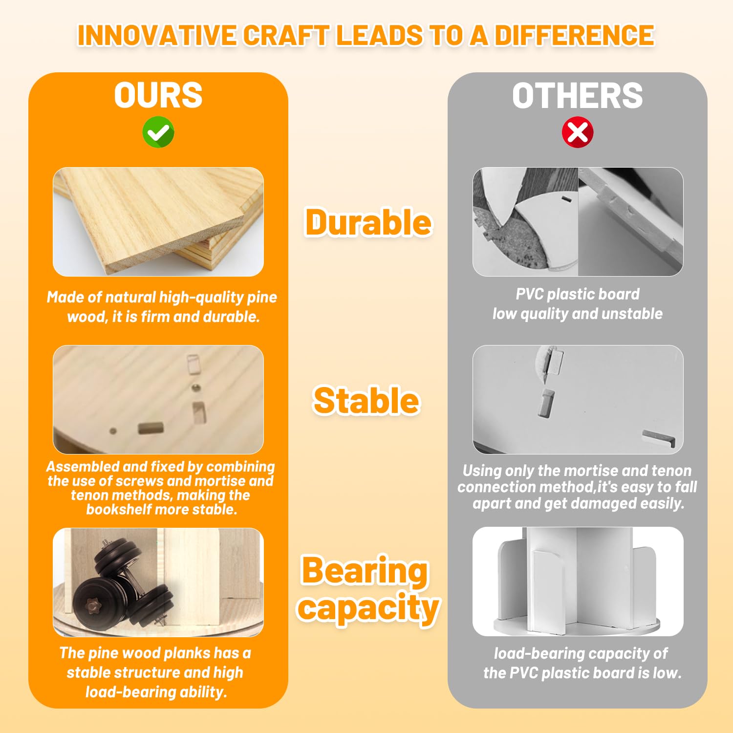 - Space-saving Design: With its space-saving design, this rotating bookshelf is an excellent choice for small rooms. It maximizes storage capacity while occupying minimal floor space, making it an efficient solution for those looking to optimize their room layout.