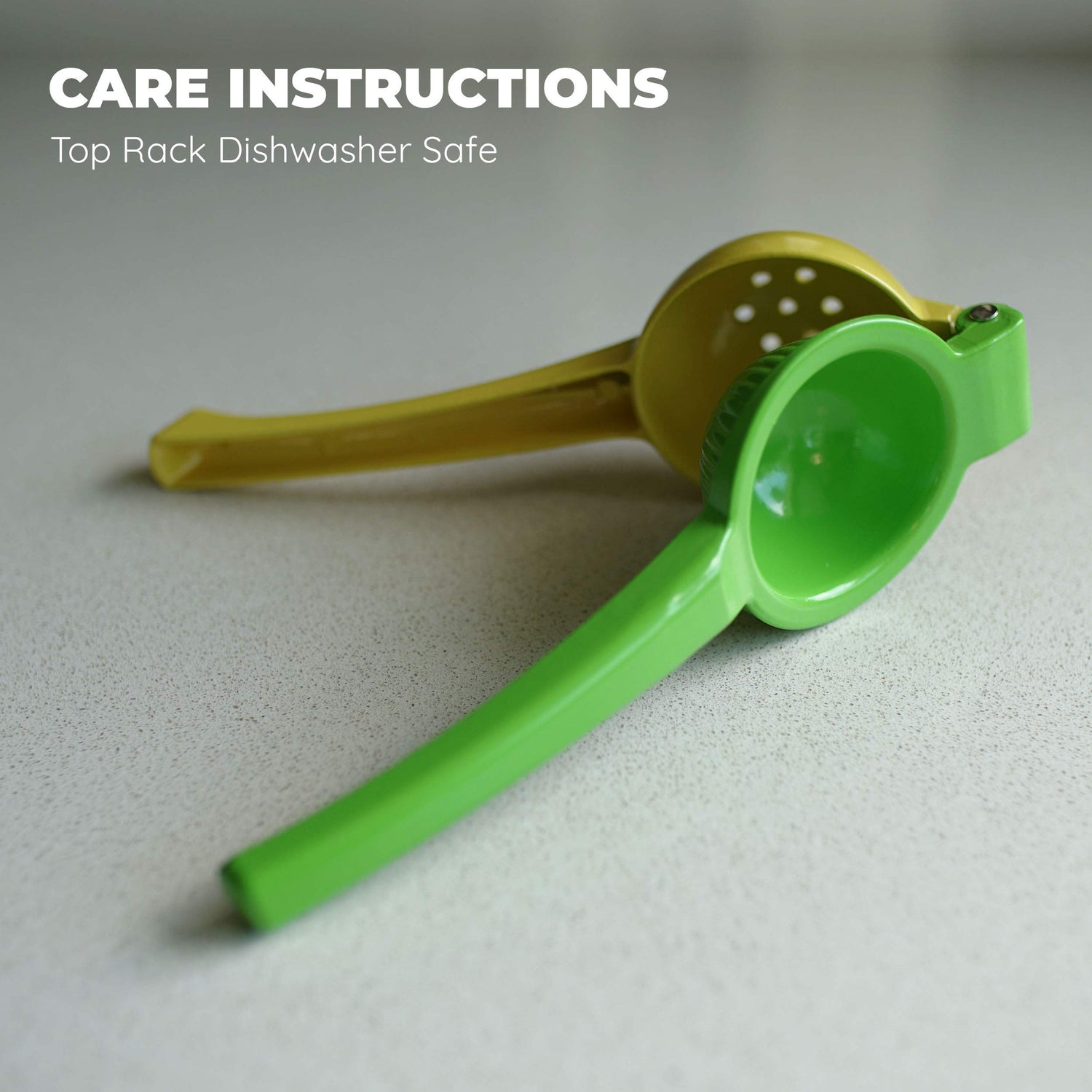 - CARE INSTRUCTIONS: This reusable citrus squeezer is easy to clean with warm water and is also top rack dishwasher safe.