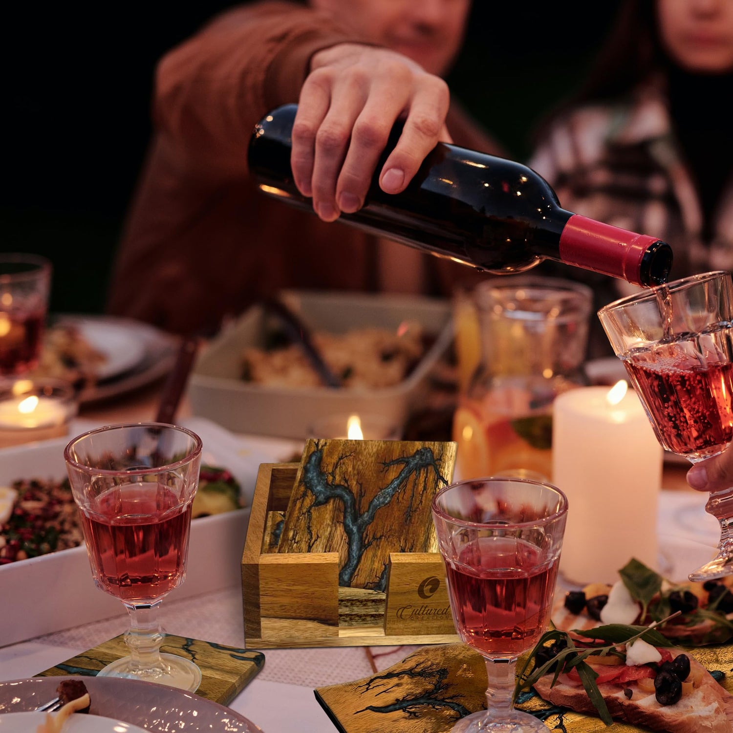 Cultured Creation | Beautiful Epoxy Resin and Wood Coaster Set | Ideal for Tabletop Protection | Enhance Your Coffee Table or Any Home Decor for Any Occasion