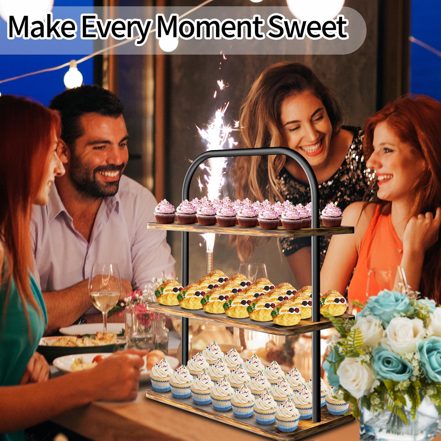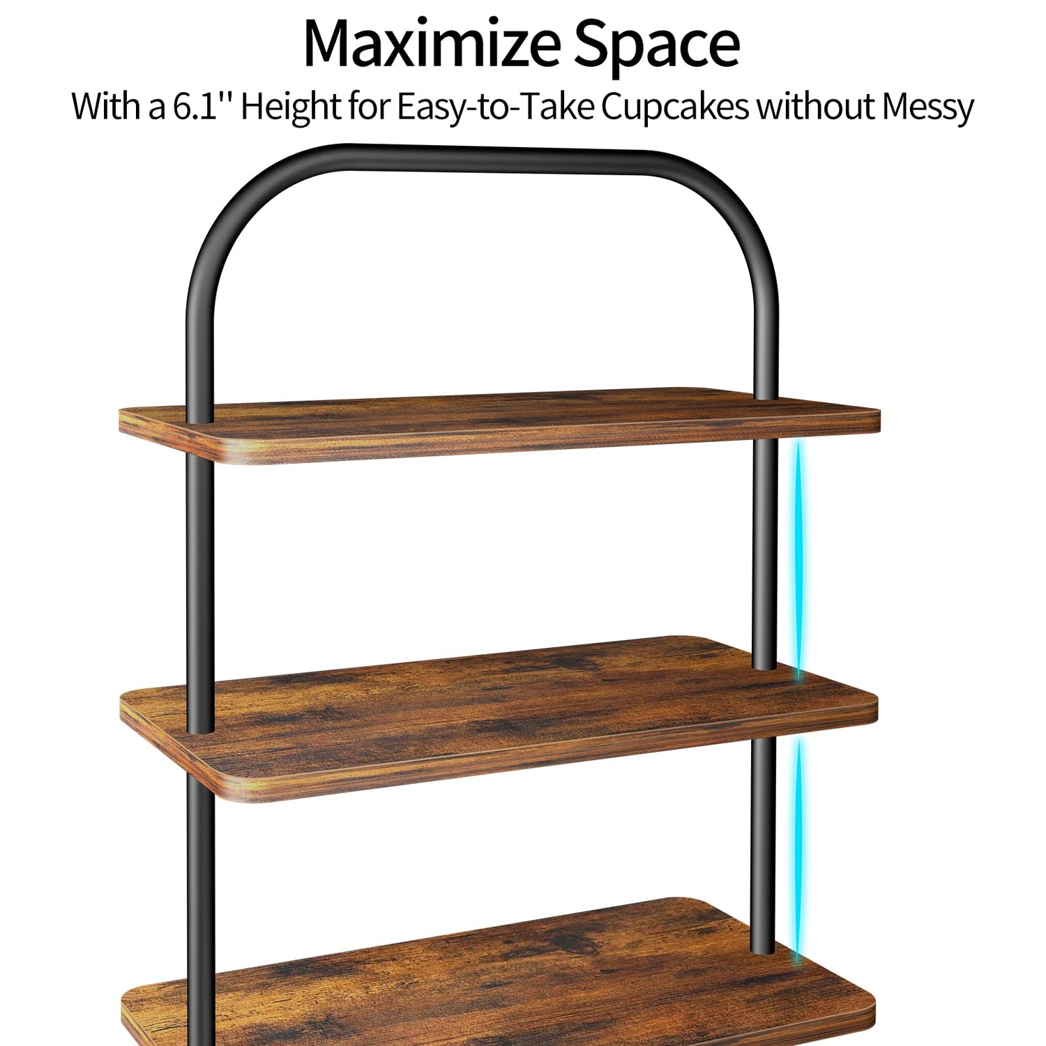 - No More Messy: With a spacious gap of up to 6.1 inches between tiers, our cupcake stand ensures easy retrieval of your desserts! No more awkward reaches or fumbling, Whether it's a cozy family gathering or a bustling party, our cupcake stand ensures everyone can indulge in dessert, and elevate your party experience.