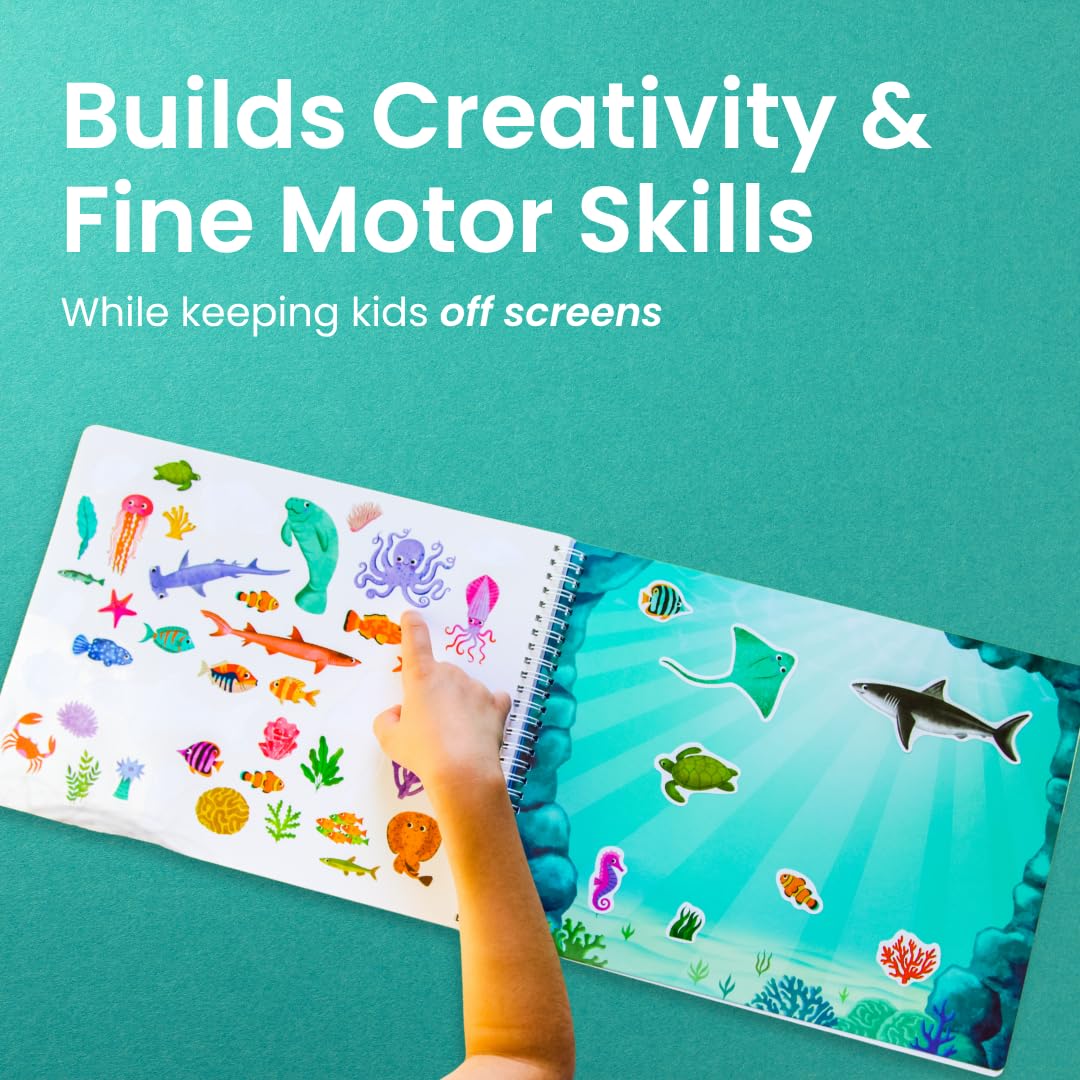 Cupkin Ocean Sticker Book Activity for Kids, Toddler Airplane Travel Essentials, 500+ Shark Stickers for Kids + 12 Scenes + 12 Coloring Book Pages, Deep Blue Sea Gift, Kid Crafts Ages 2-8