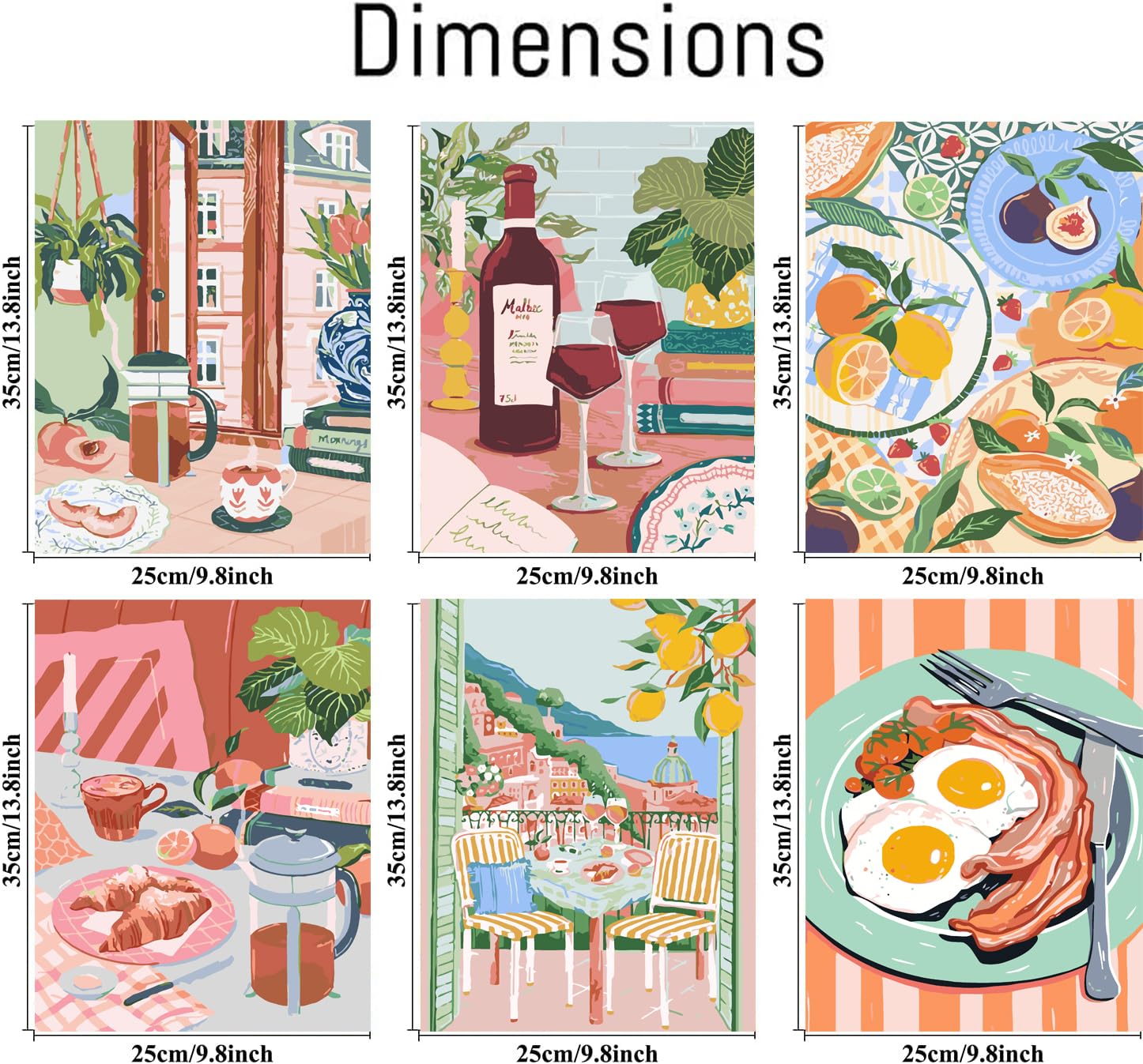 cupmod 6 Packs Paint by Numbers Kit for Adults,Coffee DIY Acrylic Oil Painting Paint by Numbers Kits on Canvas,Adults Paint by Numbers Kits Drawing Paintwork for Home Decor 9.8x13.8inch