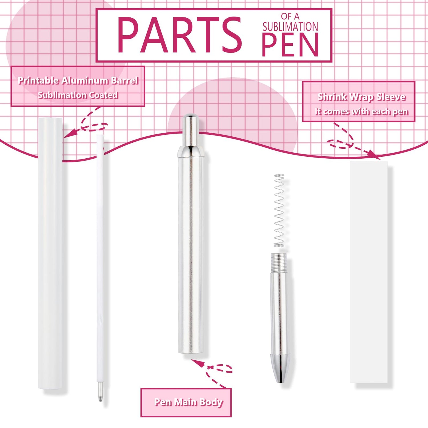 - Flexible and Creative: Unlock endless possibilities with these versatile sublimation pens blanks. The aluminum pen tube with a sublimation-coated surface allows you to effortlessly add personalized designs or labels to your creations, unleashing your creativity in every project.