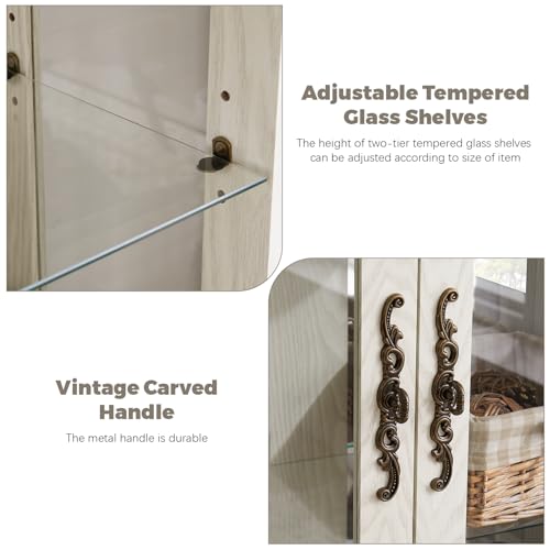 - 【Curio Cabinet with Stylish Glass Doors】Elevate your treasured collections with our exquisite curio cabinet, gracefully adorned with tempered glass doors. This display cabinet not only beautifully highlights your valuable pieces, but also harmoniously integrates into your room's ambiance, infusing an enduring aura of sophistication