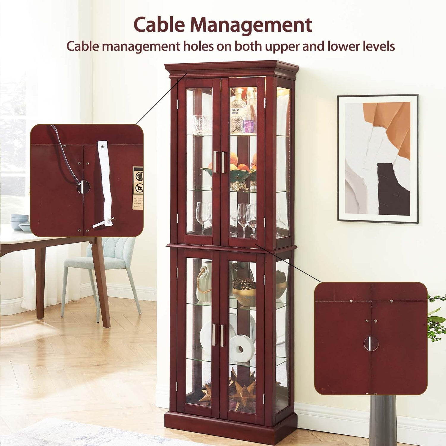 - Strong & Durable:This curio cabinet with glass doors is constructed from composite wood for ease of assembly.There are 4 front panel doors made with tempered glass,and each has two hinges to keep them in place.
