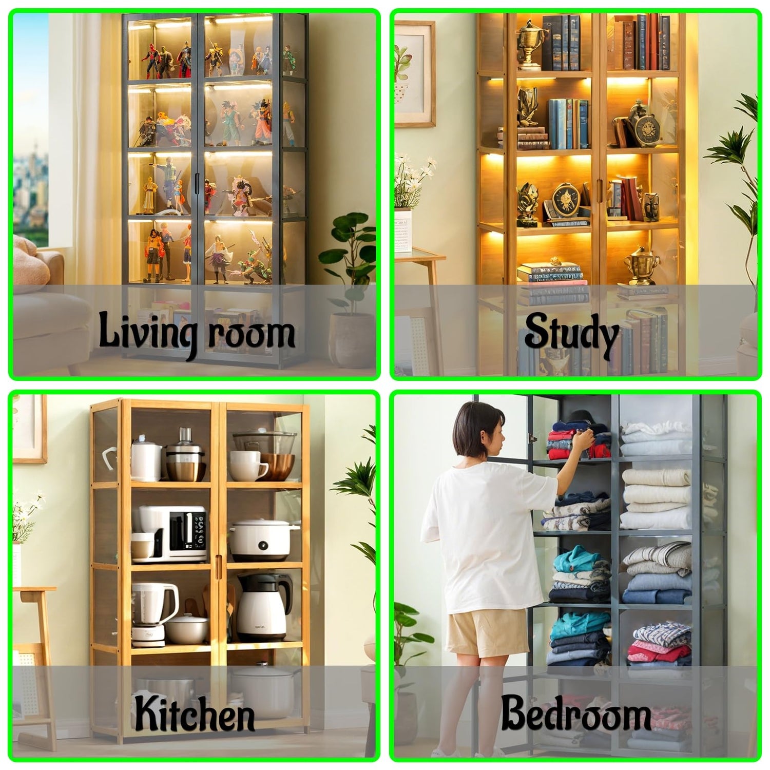 - Highly Transparent Display : Don't know how to store your cute dolls, beautiful tableware, wine, books, collectibles, antiques, and trophies? This storage cabinet will be your best choice. The door of the cabinet and two sides is embedded with highly transparent acrylic to fully display the beauty of your collection while avoiding dust. Suitable for study, living room, dining room, bedroom, game room etc.