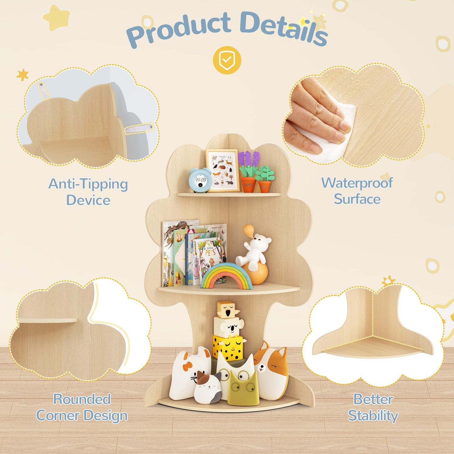Curipeer Tree Kids Bookshelf, Corner Bookshelf Kids, Bookshelf for Kids, Baby Bookshelf and Toy Storage, Wooden Kids Bookcase, Toddler Book Shelf Organizer for Kids Rooms, Nursery, Natural Wood