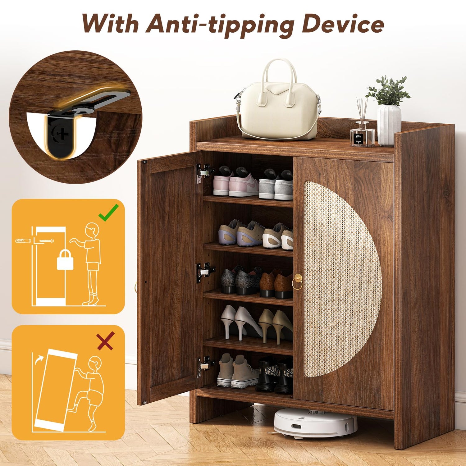 Curlaky Shoe Cabinet Storage for Entryway - Rattan Entry Way Shoe Storage Cabinet with Adjustable Shelves, Wood Shoe Organizer Cabinet, Accent Cabinet with Doors for Entrance Hallway Living Room Foyer