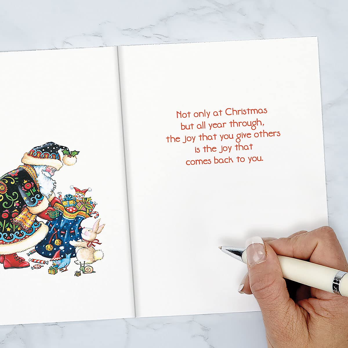 - BRIGHT, COLORFUL DESIGNS: Add a fun personal touch to the holidays with this festive design featuring a jolly old Santa surrounded by toys in a magical forest paired with a merry message that captures the true essence of the holiday season; Inside: Not only at Christmas, but all year through, the joy that you give others is the joy that comes back to you