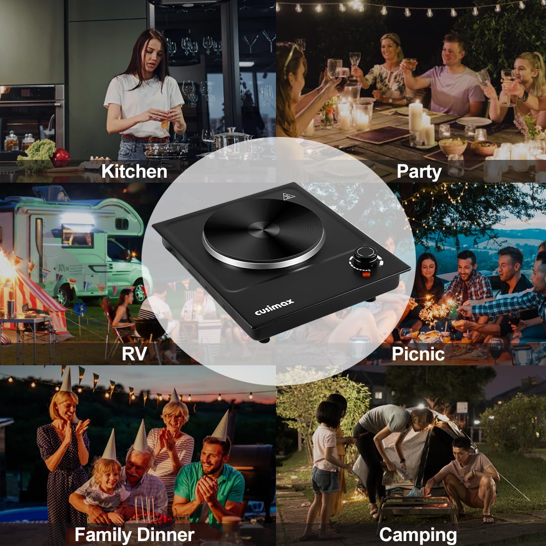 CUSIMAX Hot Plate, Single Burner Electric Cooktop, 1500W Electric Burner Hot Plate for Cooking with Adjustable Temperature, Portable Countertop Burner Stainless Steel, Black, New Model
