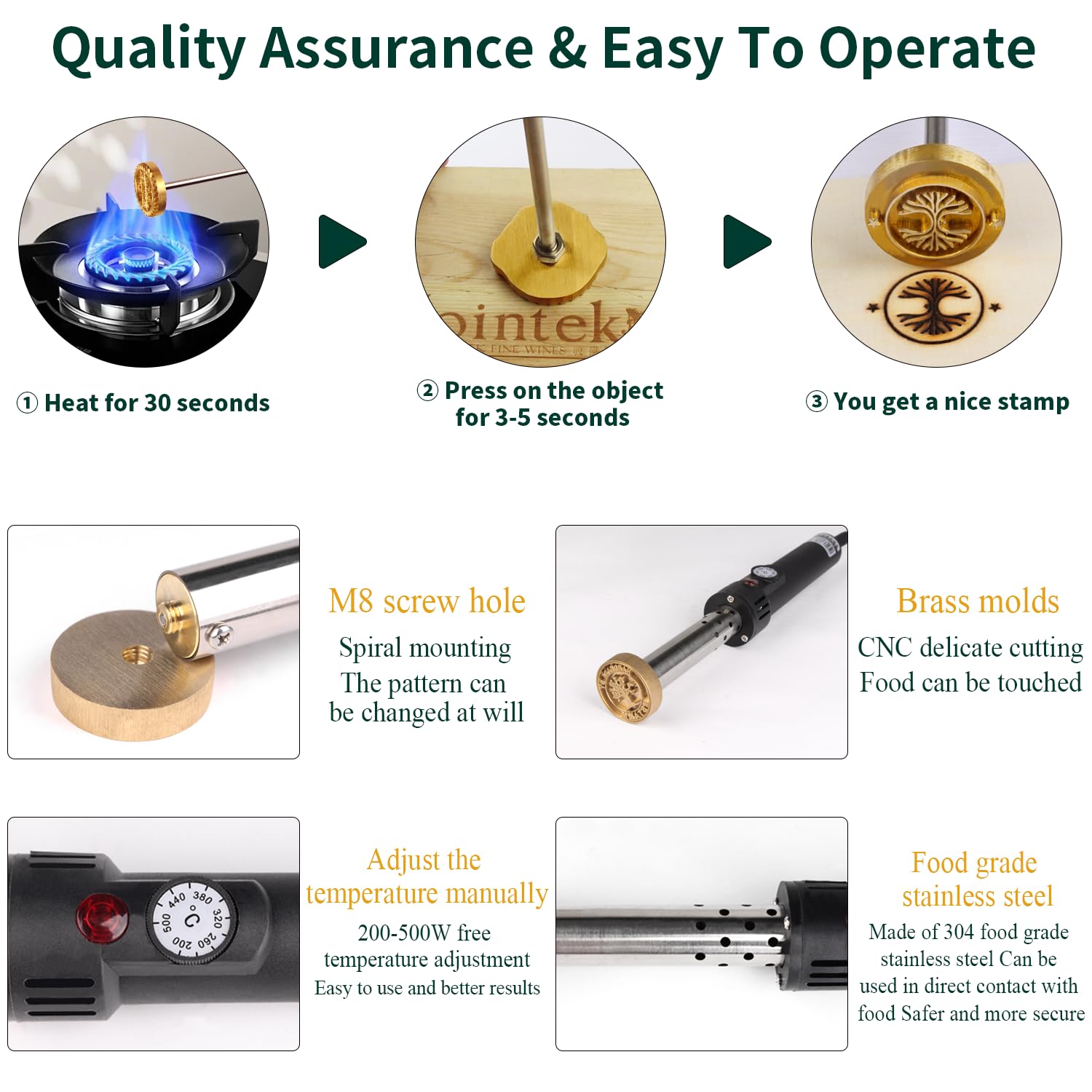 Ease of use is assured with this custom stamp. Simply heat it over an open flame for 2-3 minutes to imprint your custom design. If you prefer an electrically heated tool, just adjust the temperature and wait for it to heat up before applying your design.