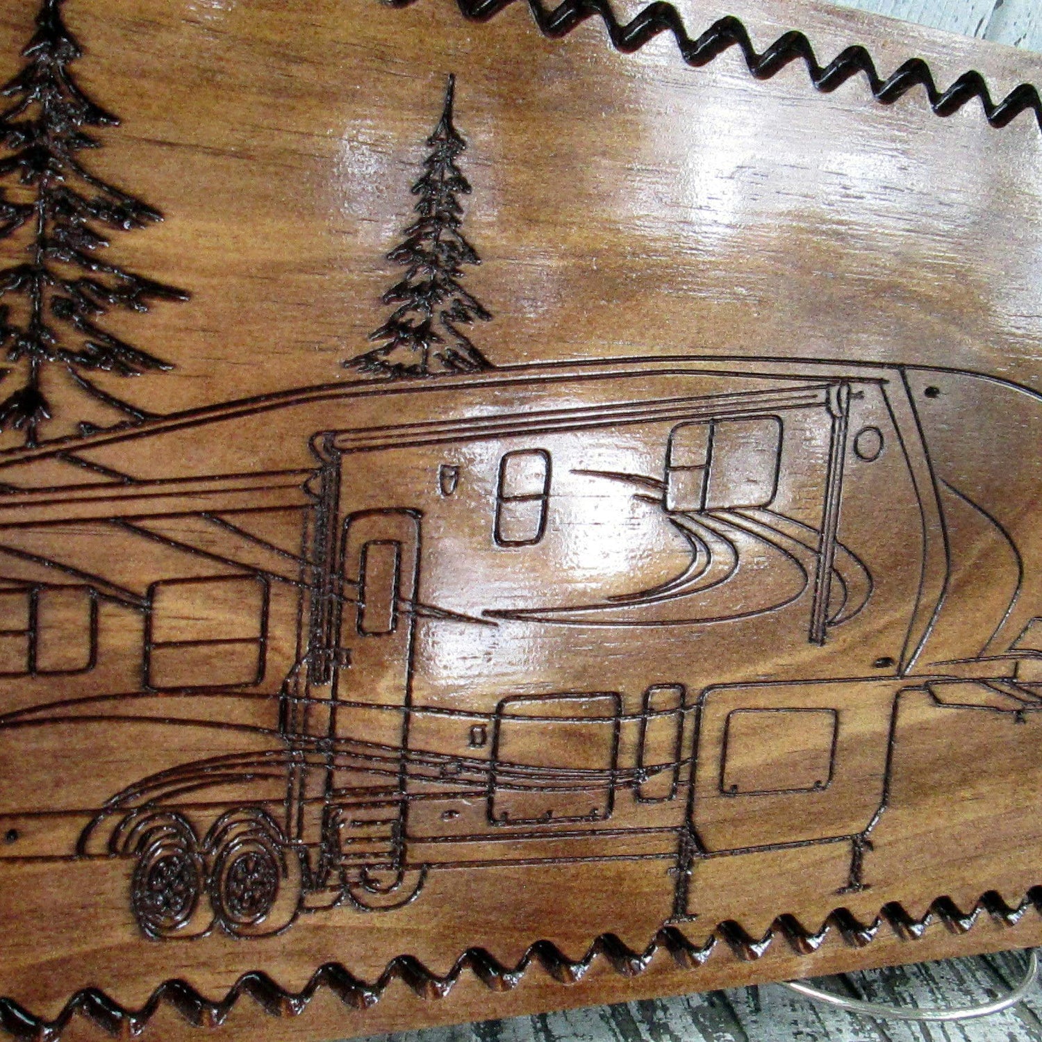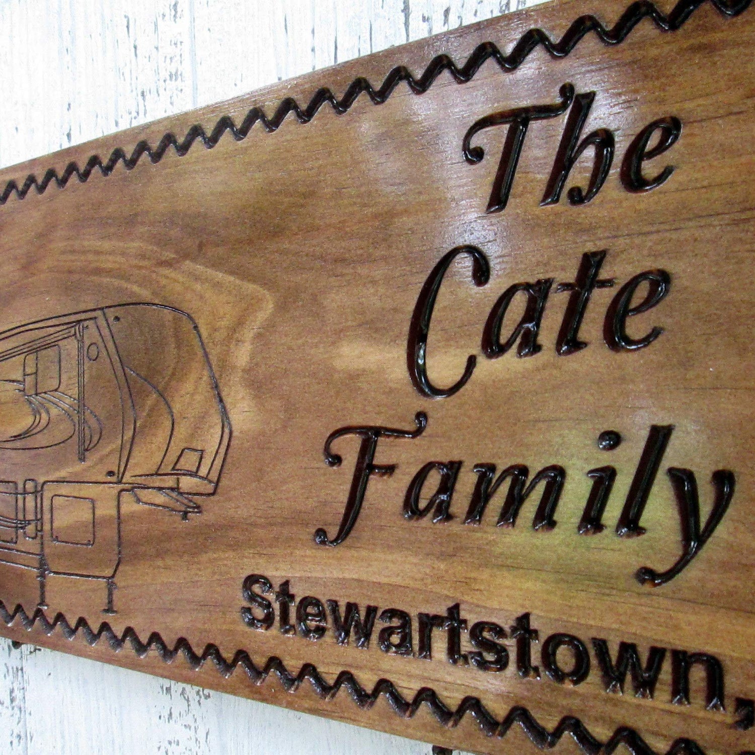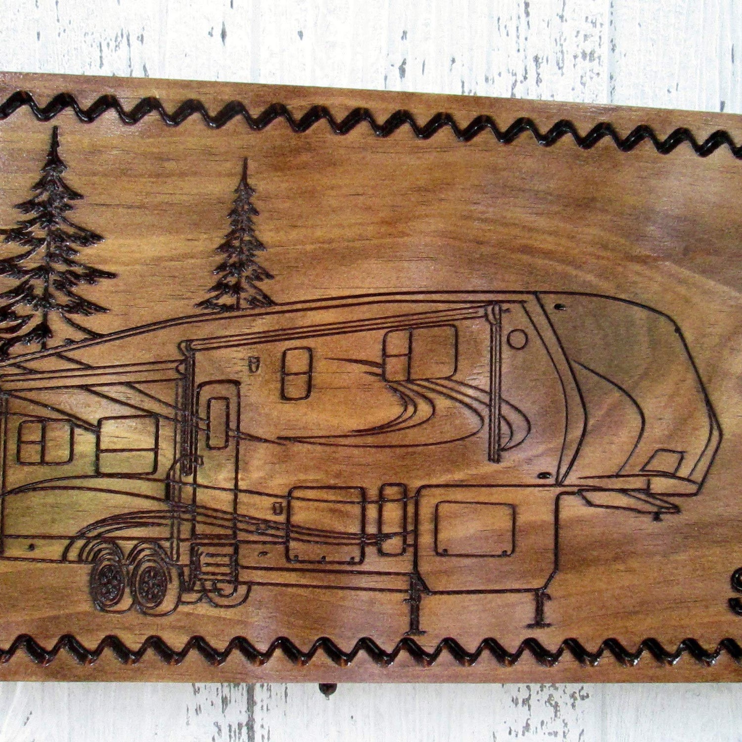 Custom Camping Sign with a 5th Wheel Camper, Personalized Camper Sign, Custom Carved Wooden Signs, C111
