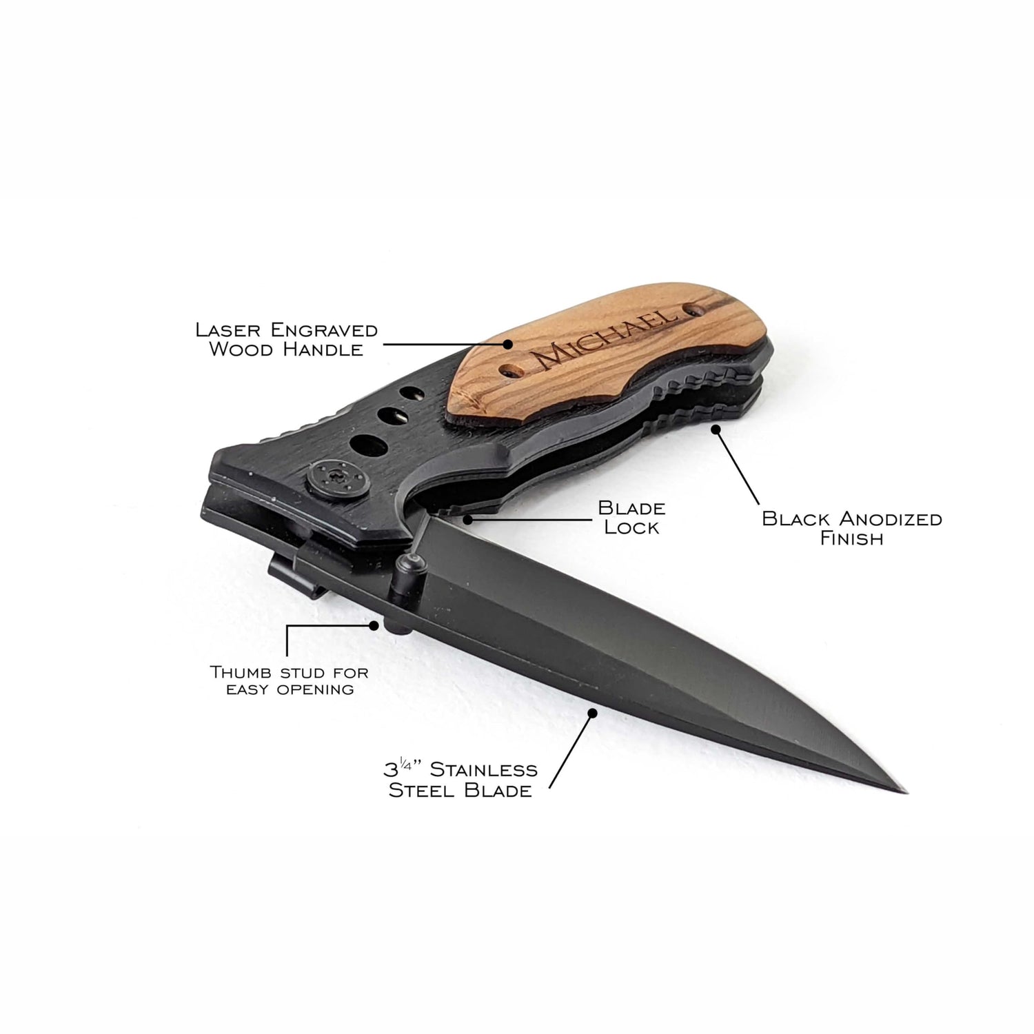 Custom Engraved Wood Handle Pocket Knife - Personalized Gift for Men - Ideal for Birthdays, Anniversaries, and Special Occasions