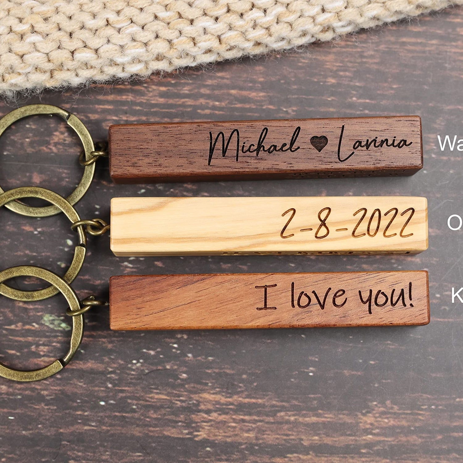 - Our wooden keychains are available in 3 wood species: Walnut, Koa, and Olive. Made from 100% sustainable, authentic natural wood