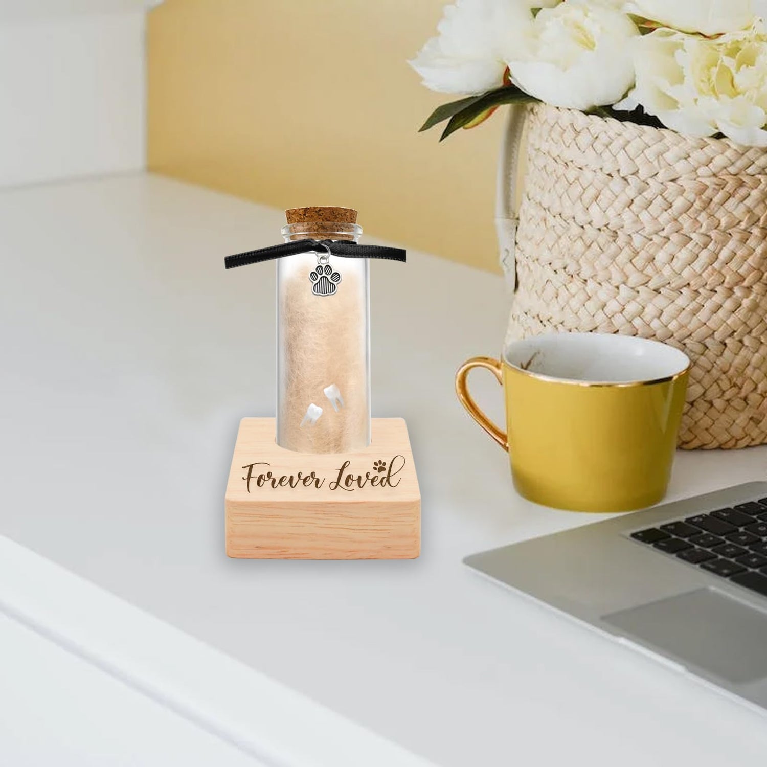 Details: This beautiful pet memorial bottle is the perfect way to commemorate your beloved pet, the high quality glass bottle holds your pet's hair and teeth, and the natural wood base can be customized with your pet's name, date, or your desired text. You can also customize your pet's photo. This is a symbolic and meaningful gift for friends and family.
