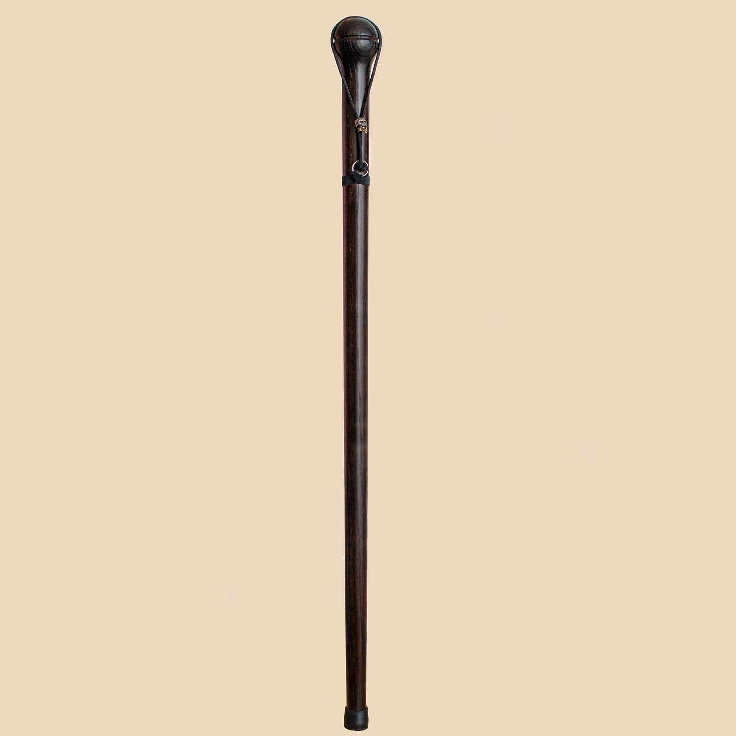 The cane is handcrafted from a solid piece of hard oak wood, finished with hypoallergenic high-quality Italian coatings. This walking stick comes with a handmade paracord wrist strap decorated with a unique metal Celtic Bearded bead.