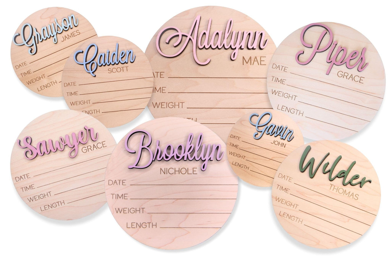 - Multiple Sizes Available: Our birth announcement signs come in multiple sizes to fit any space, making them versatile for various layouts. Available in 4", 5, 6", 7", or 8"