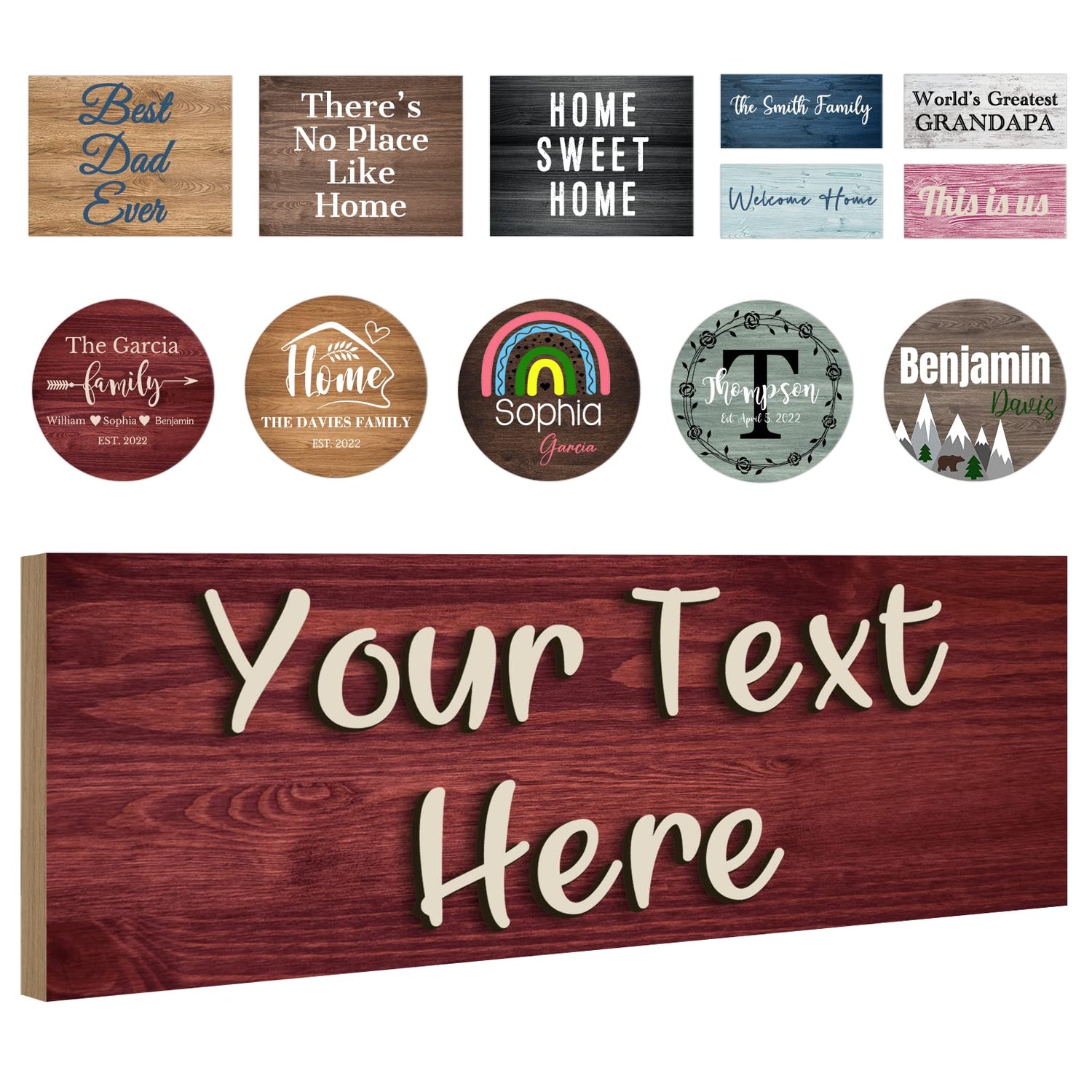 - 😊[Premium Customized Signs] - Quality craftsmanship personalized signs for home with the print name of the family, and any text. OR 3D lettering and patterns that pop right out of the custom wooden name sign. You can choose from 12 stylish backgrounds and fonts and designs to personalize your own rustic wood signs.