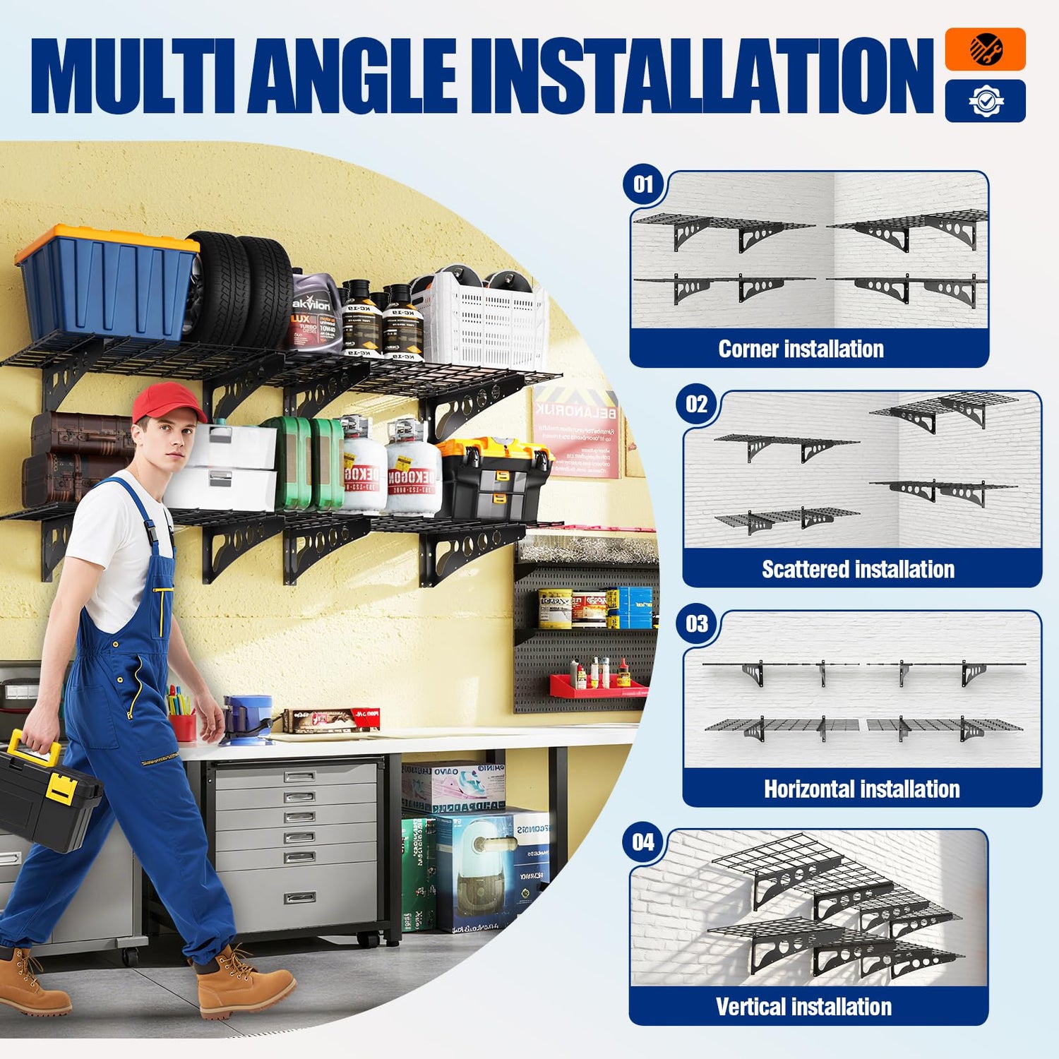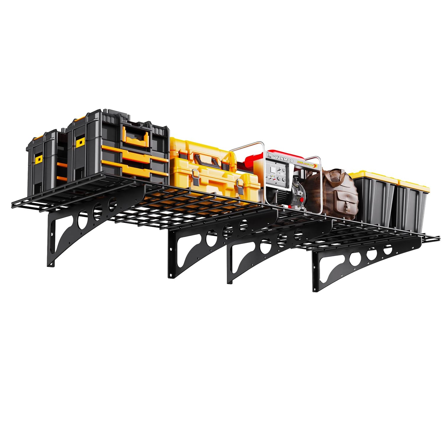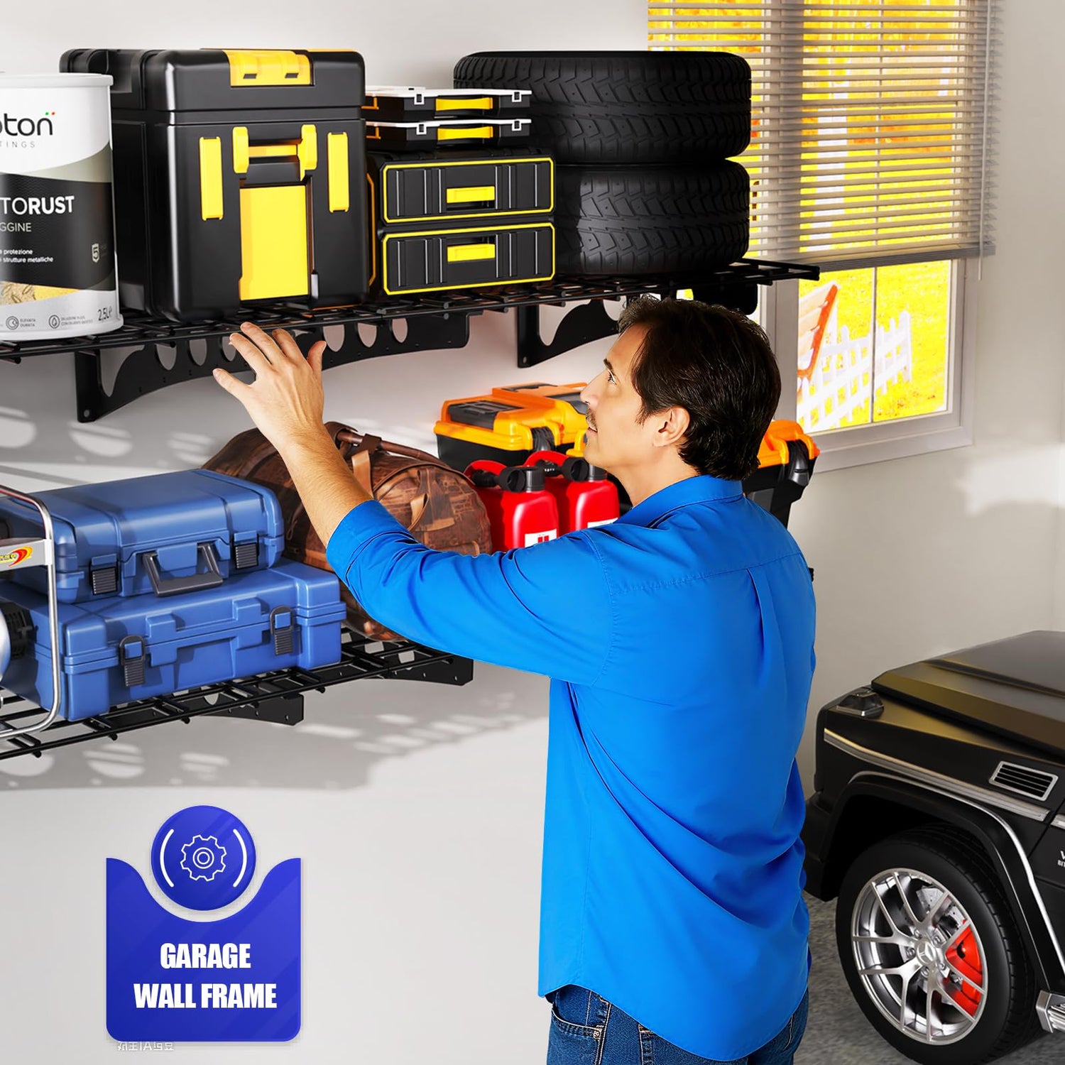 - 2.Craftsmanship Upgrade: Crafted from metal steel, the garage wall shelf boasts exceptional hardness and wear resistance—a stark contrast to wooden racks prone to cracking and warping—significantly extending its service life.Its surface is coated with a black protective layer, giving the wall shelf excellent rust and moisture resistance.The vehicle storage rack employs a specialized process to ensure the mesh and frame snap together securely, providing stable load-bearing capacity while facilitating future adjustments and cleaning. It seamlessly blends practicality with convenience.