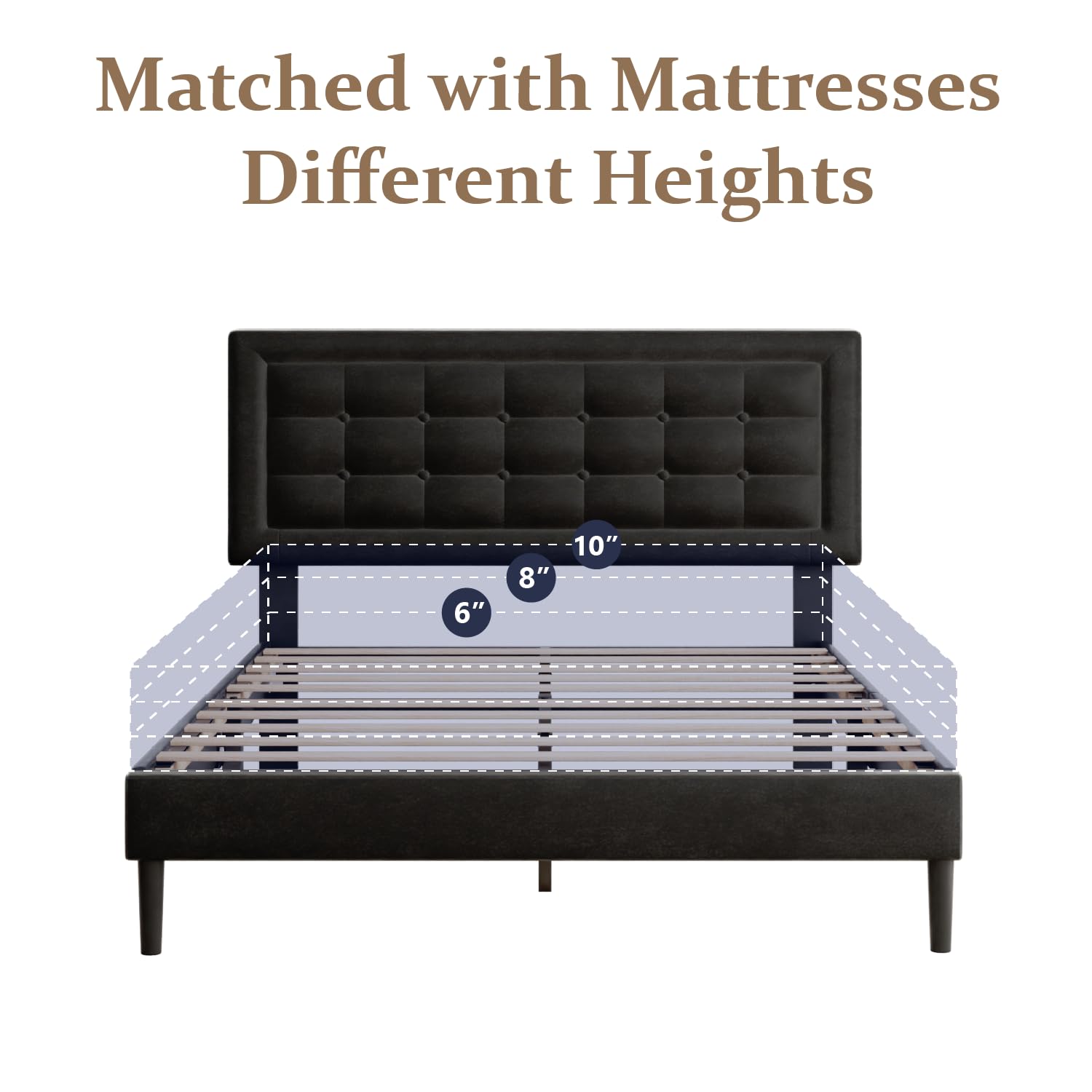 - No Box Spring Needed: Queen size bed frame with headboard, and sturdy velcro wood slats provide excellent support and extend the life of your latex, memory foam, or spring mattress. Recommended mattress thickness is 6" - 10"