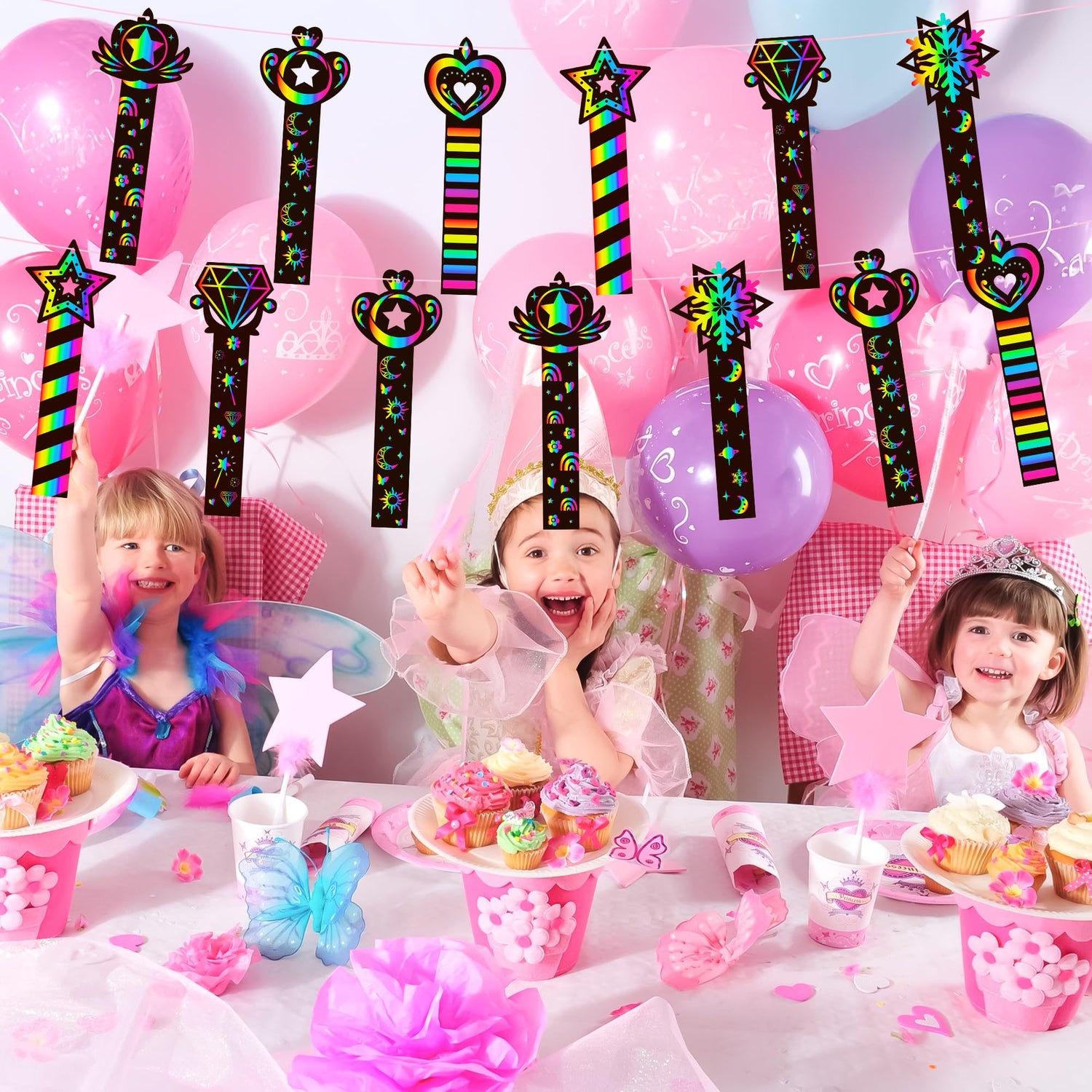 CY2SIDE 60PCS Princess Fairy Wand Scratch Bookmarks for Girls, Make Your Own Fairy Stick Scratch Paper Magic Wands Bookmark, DIY Princess Stick Rainbow Crafts Ornaments for Kids Birthday Party