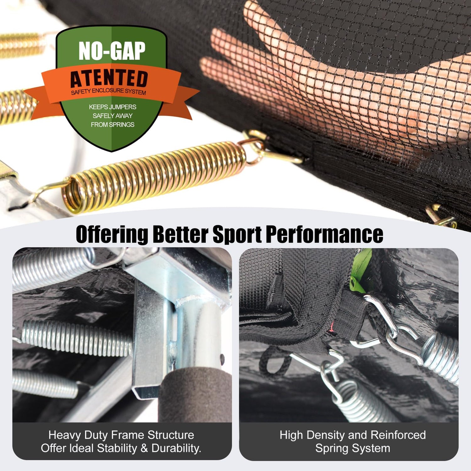 - 【ASTM and CPC Approved & 360-Degree Protective Design】 Safety is our top priority. Our outdoor trampoline for kids has ASTM and CPC approved. All parts of kids trampoline are carefully selected and rigorously tested to ensure durability and safety. 360-degree protective net enclosure, top perforation fasten design, stable connection method and reinforced angle structure prevents kids from falling off, ensuring optimal stability and unmatched durability for play.