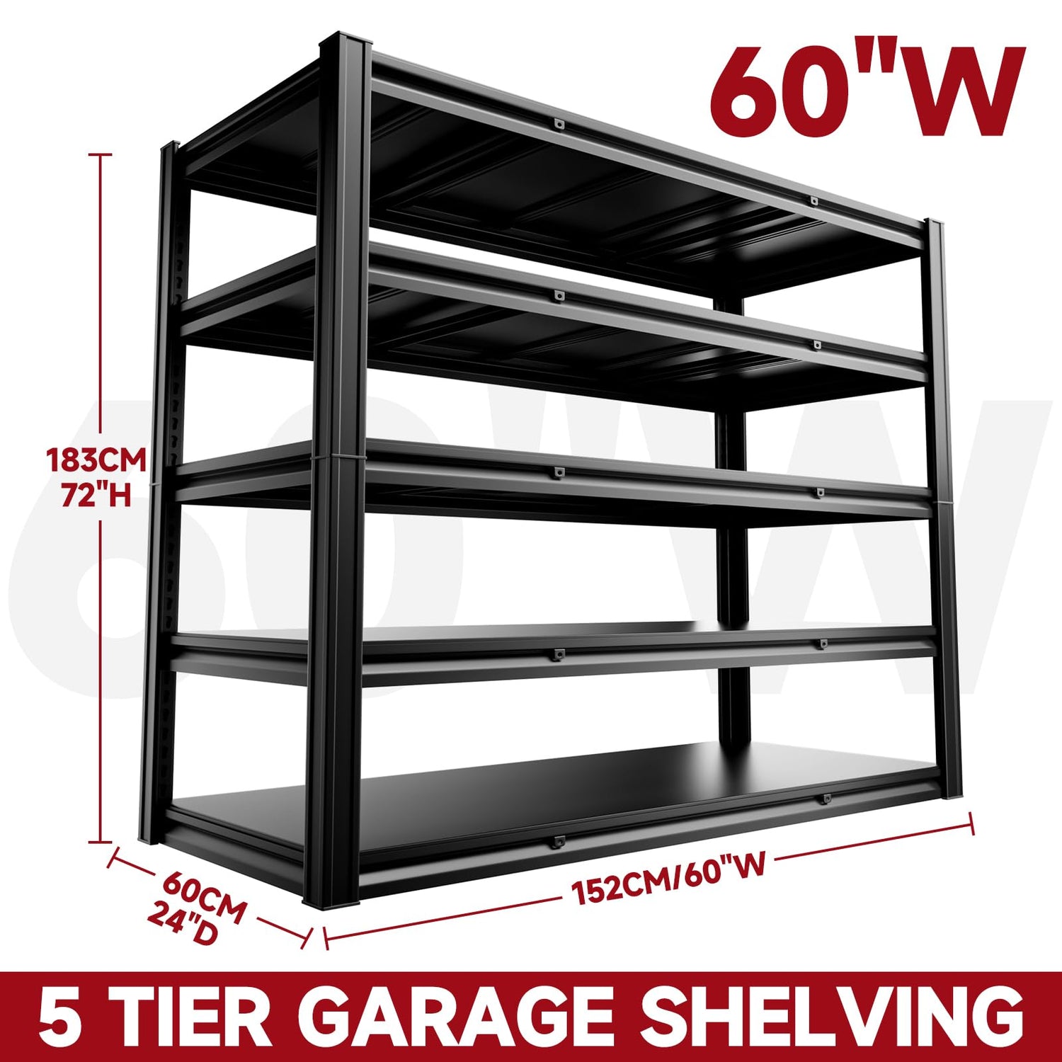 cynnda 5-Tier 60" W x 24" D x 72" H Garage Shelving 3000LBS Storage Shelves Heavy Duty Metal Shelf Unit Adjustable Basement Industrial Storage Racks